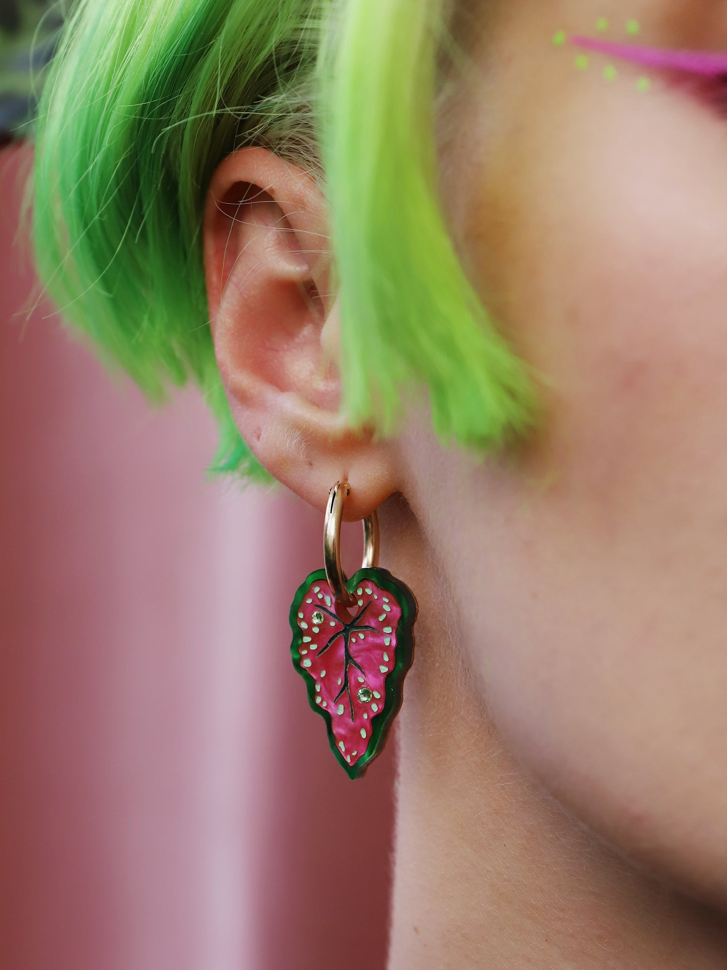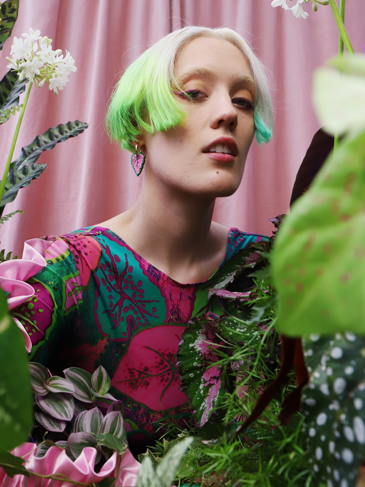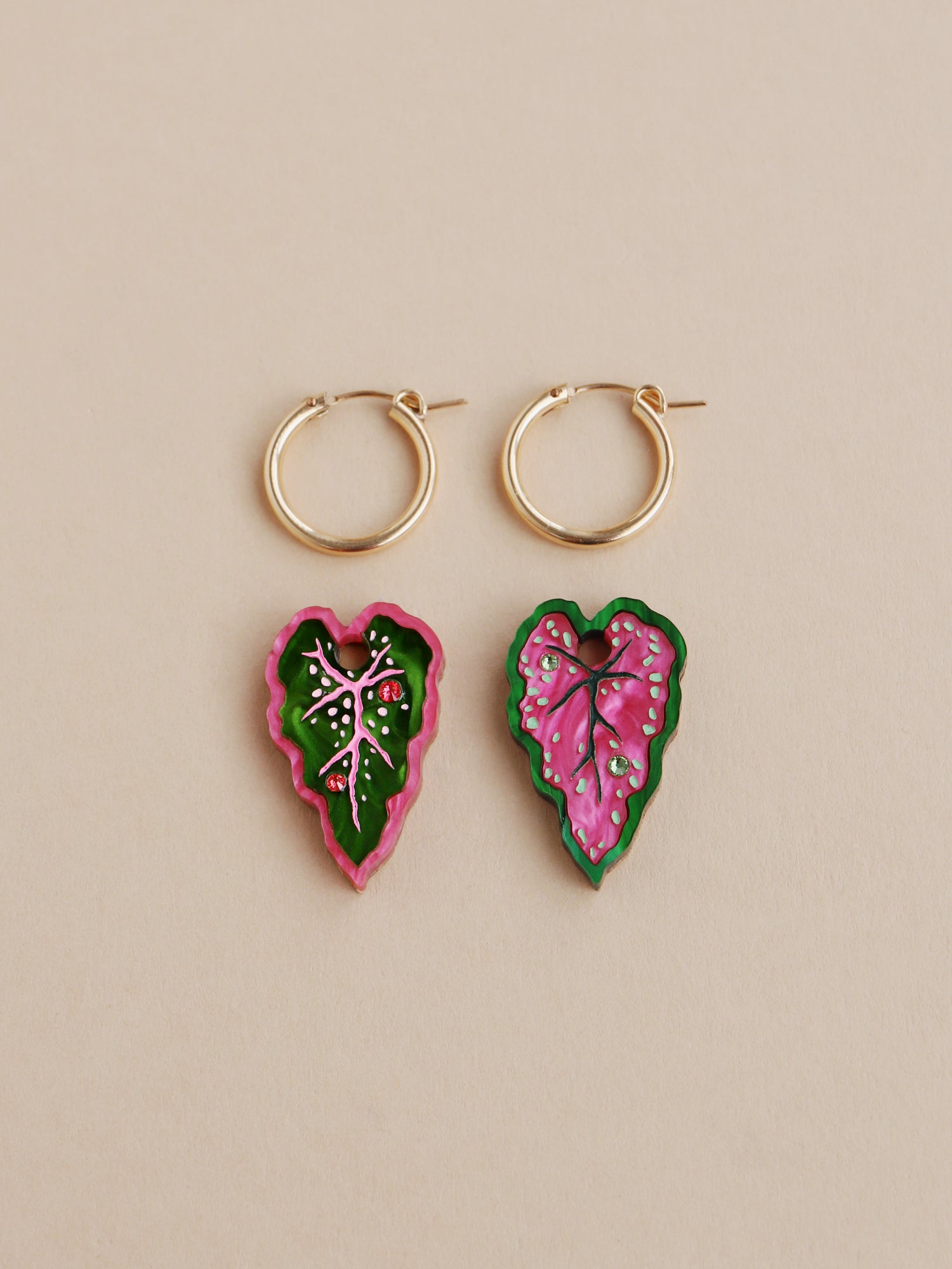 The collection was inspired by the heart-shaped caladium leaves featured in L.O.M’s vibrant new print, Cala Elysium.