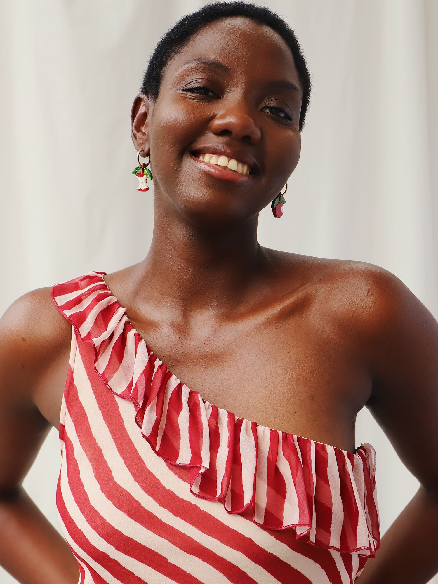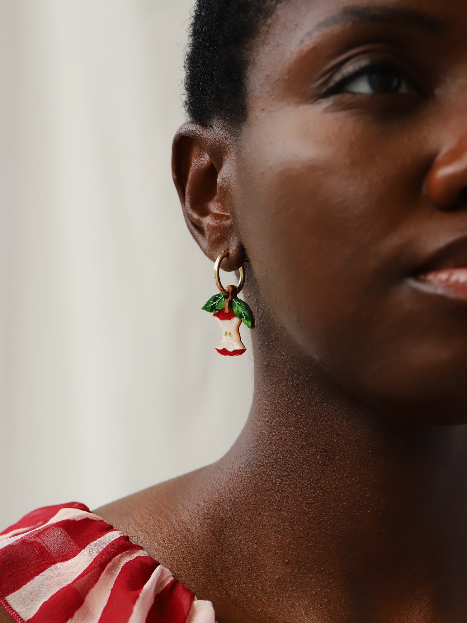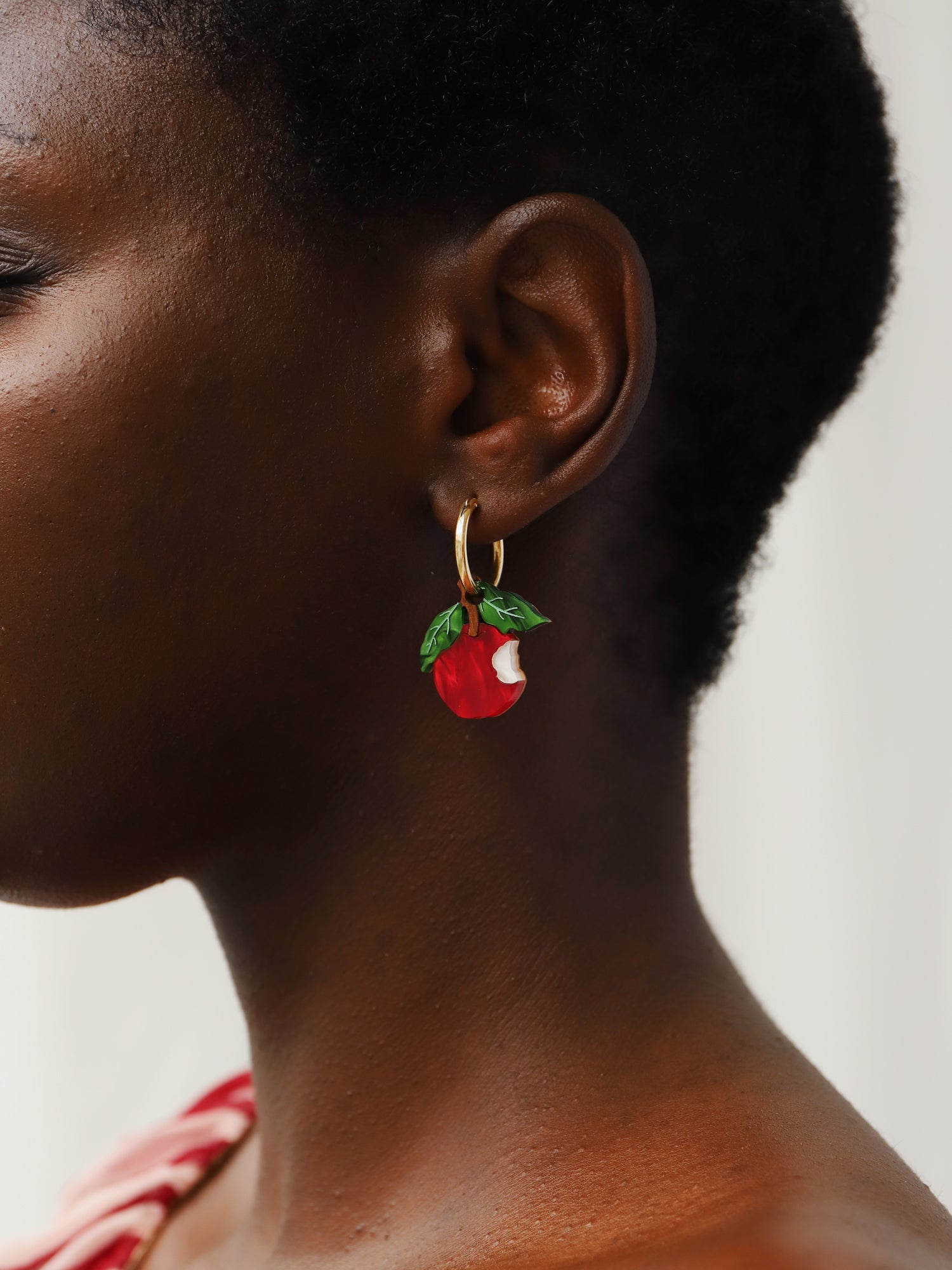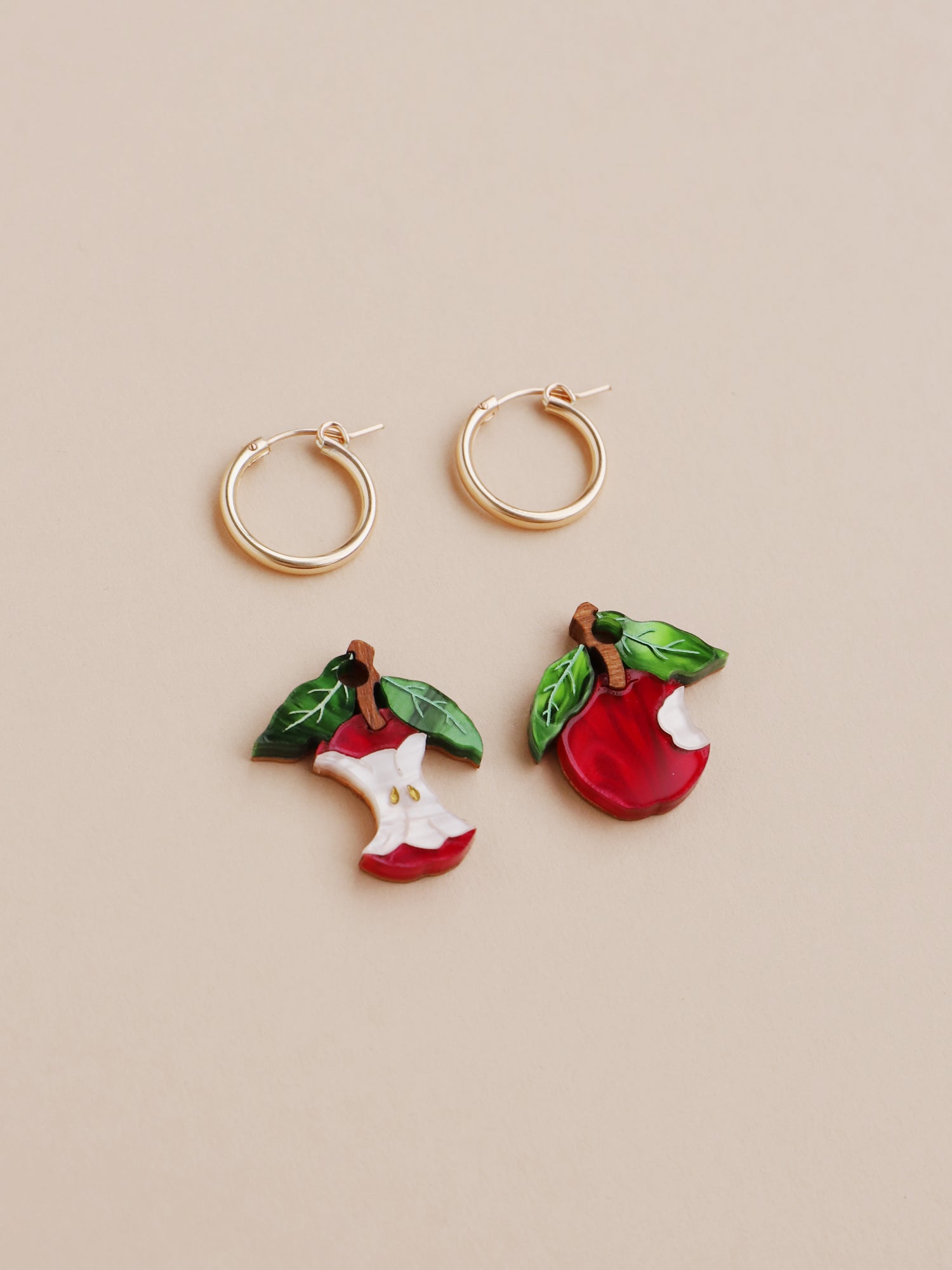 Straight from the orchard (and half-eaten!), our apple hoops are made with acrylic and wood with hand-inked details.