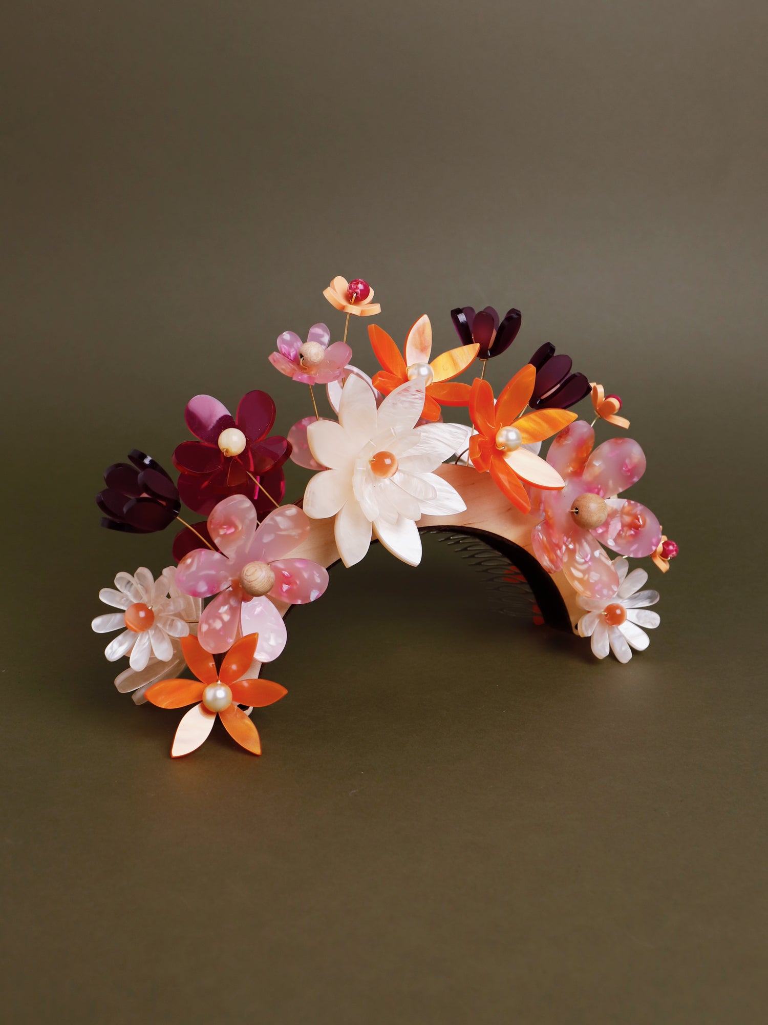A meadow scene abundant with individually hand-formed acrylic flowers in varying colours and textures. And not only is the front beautiful, the back is too - the flowers cover the whole surface of the band.