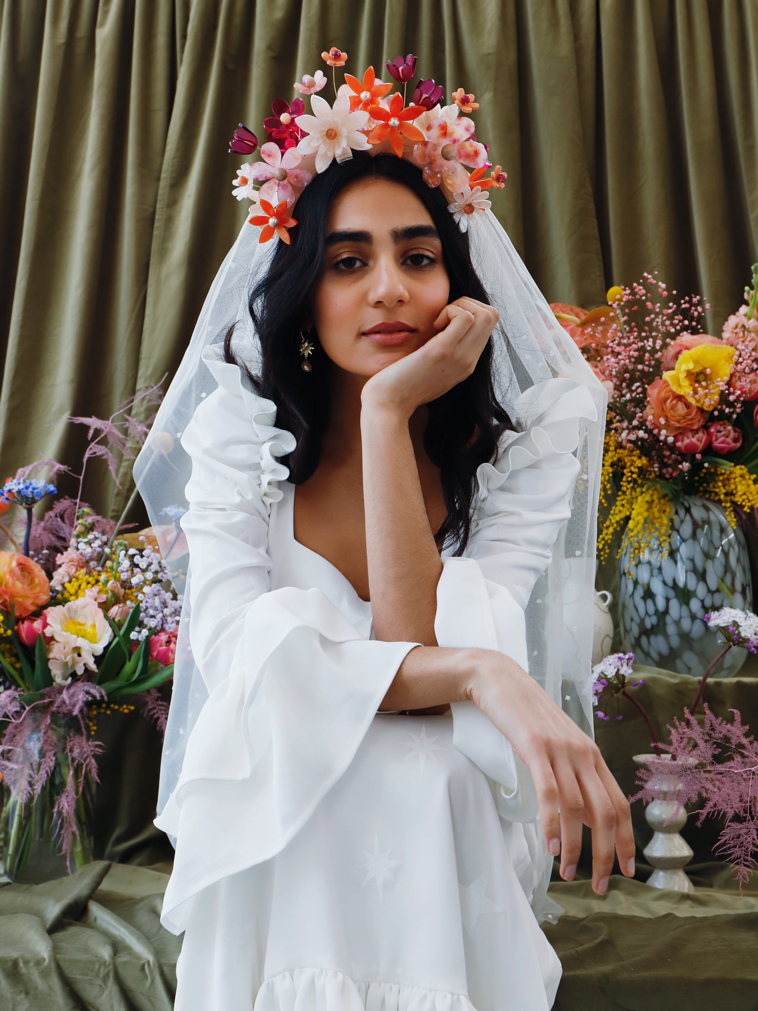 We also offer a headpiece try-on service at our London studio! Please email hello@wolfandmoon and we can organise the time & date.