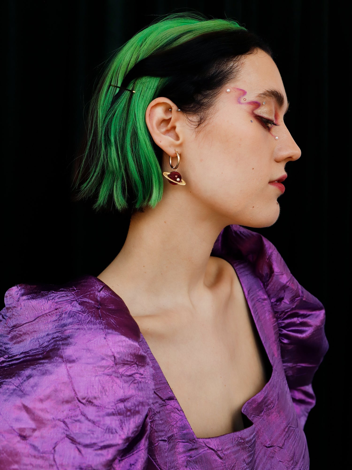 For those who can’t stop staring at the night sky! This dreamy mismatched pair is the best of both 'worlds': our Saturn and Shooting Star styles in one.