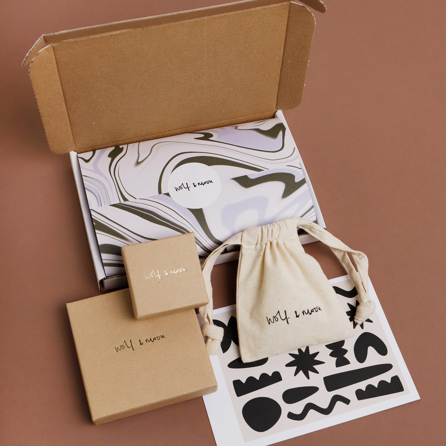 We encourage you to use our packaging to store your jewellery and keep it protected. Within each order, we include a printed paper wrap (made from recycled paper with eco-friendly inks) which not only looks great, but is perfect for reusing as gift wrap.