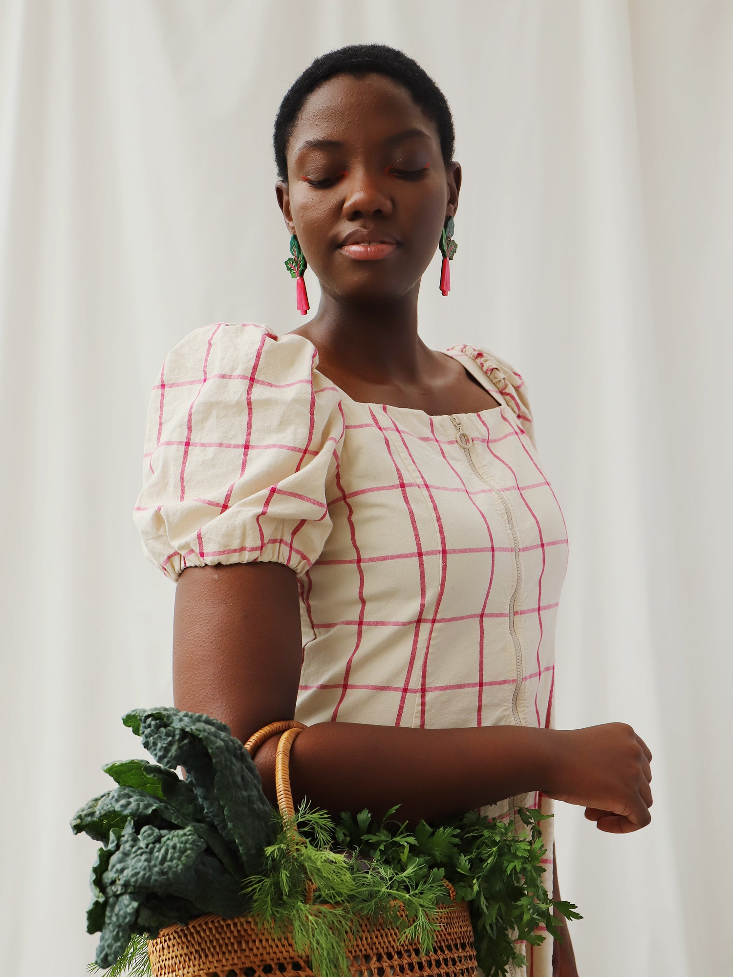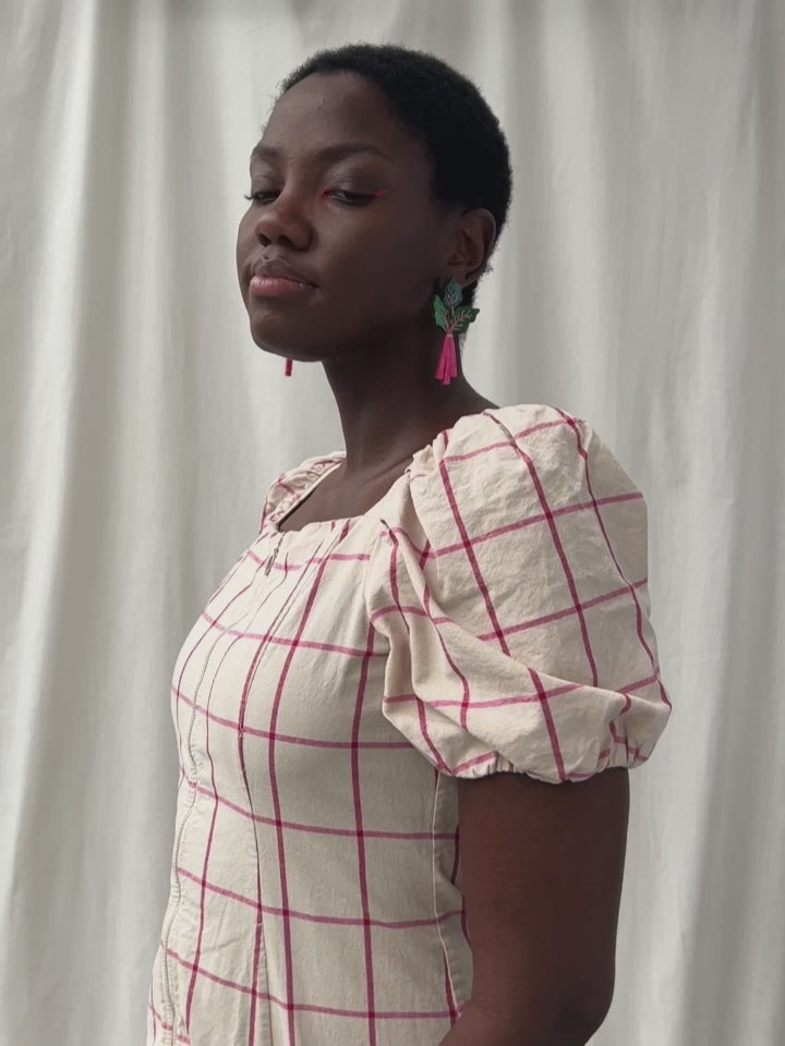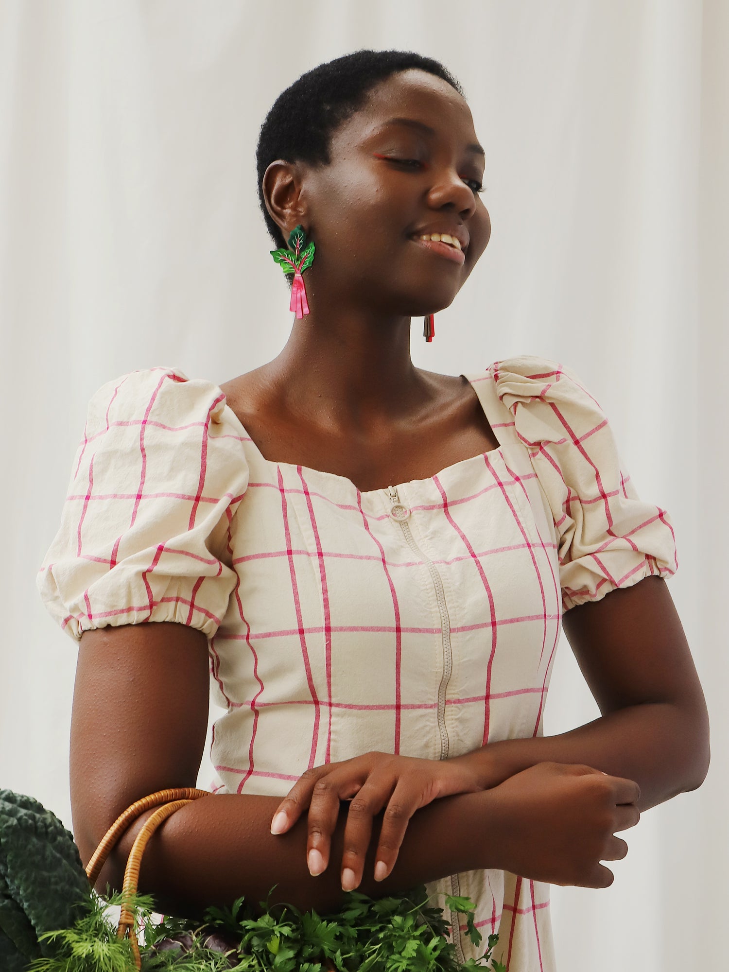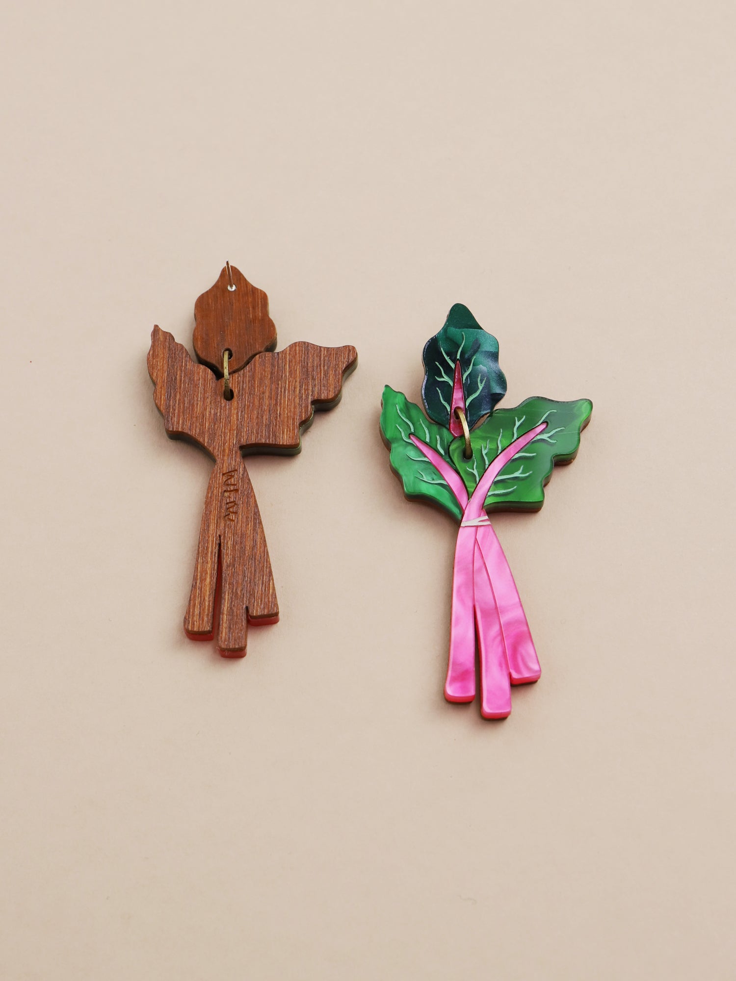 Make a statement with our lightweight rhubarb earrings made from acrylic with hand-inked details.