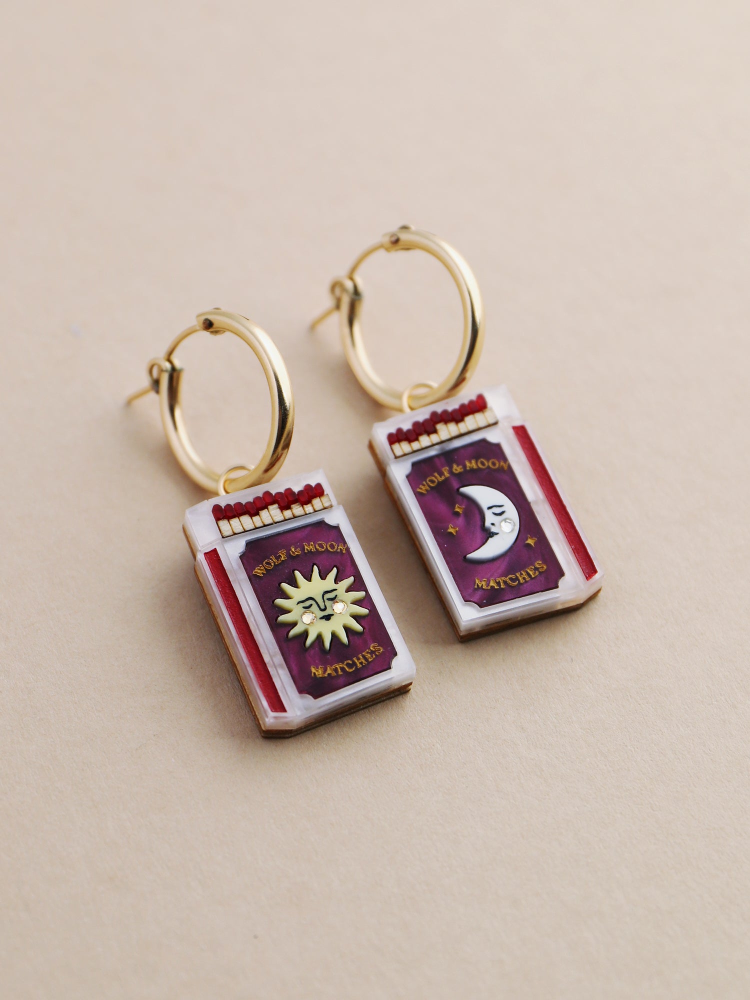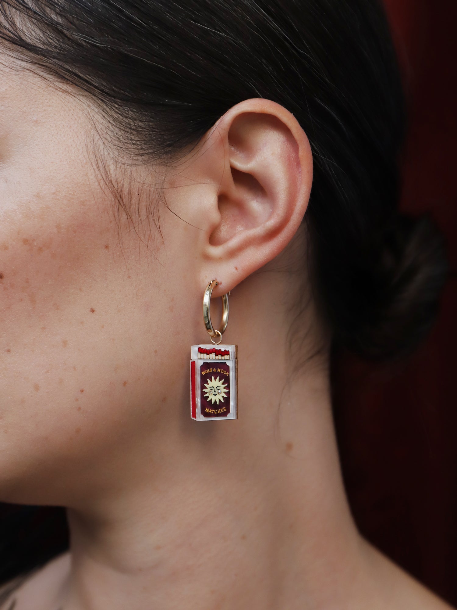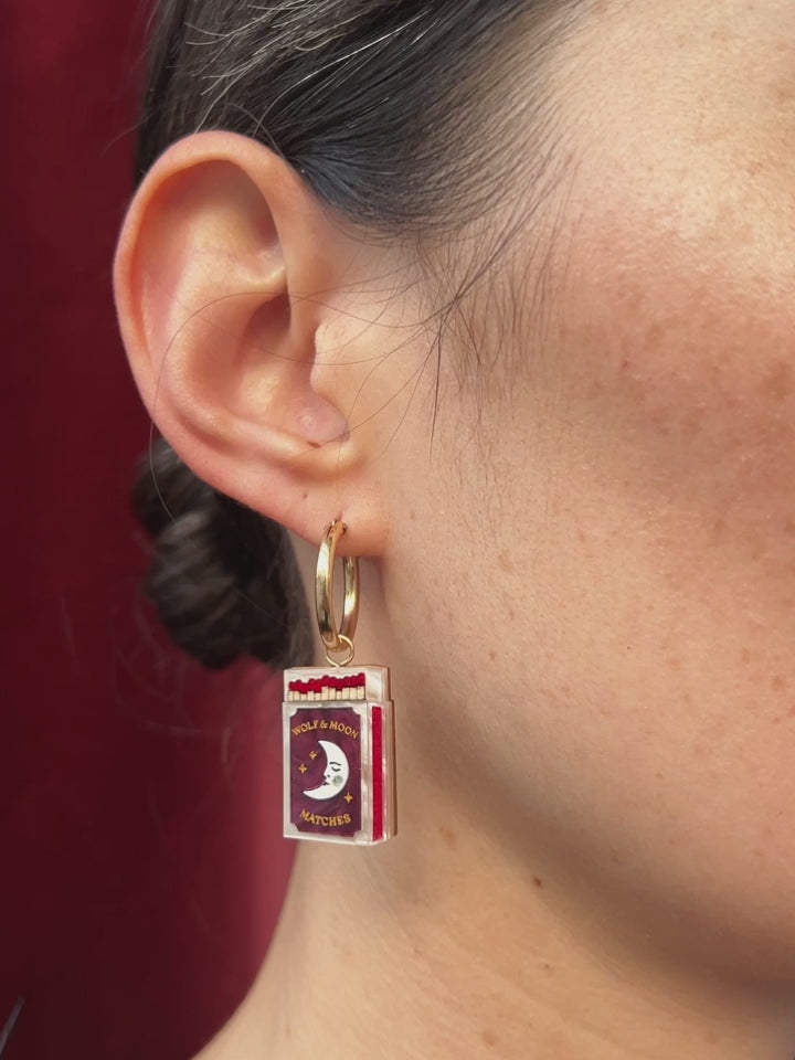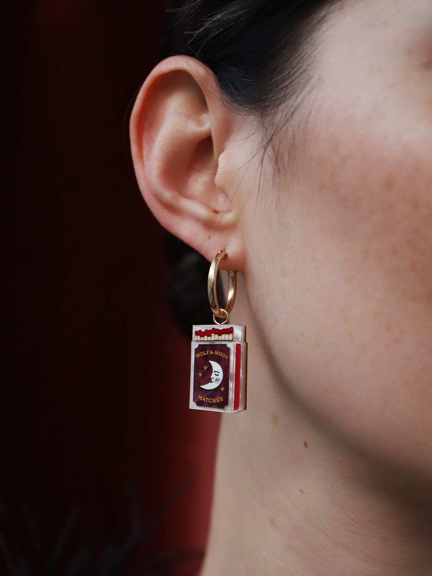 Feel dinner party ready with our lightweight matchbox hoop earrings, made from acrylic with hand-inked details.