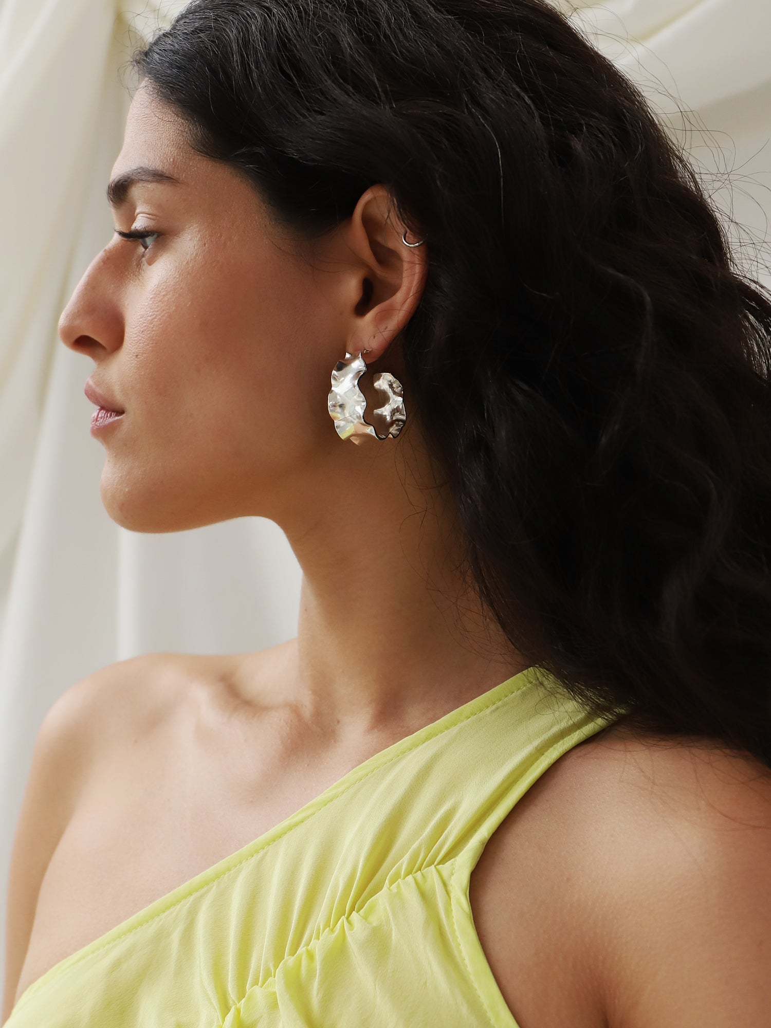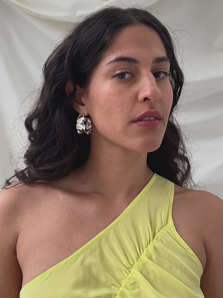 These romantic statement earrings have a gorgeous reflective quality and are a modern twist on a classic hoop.