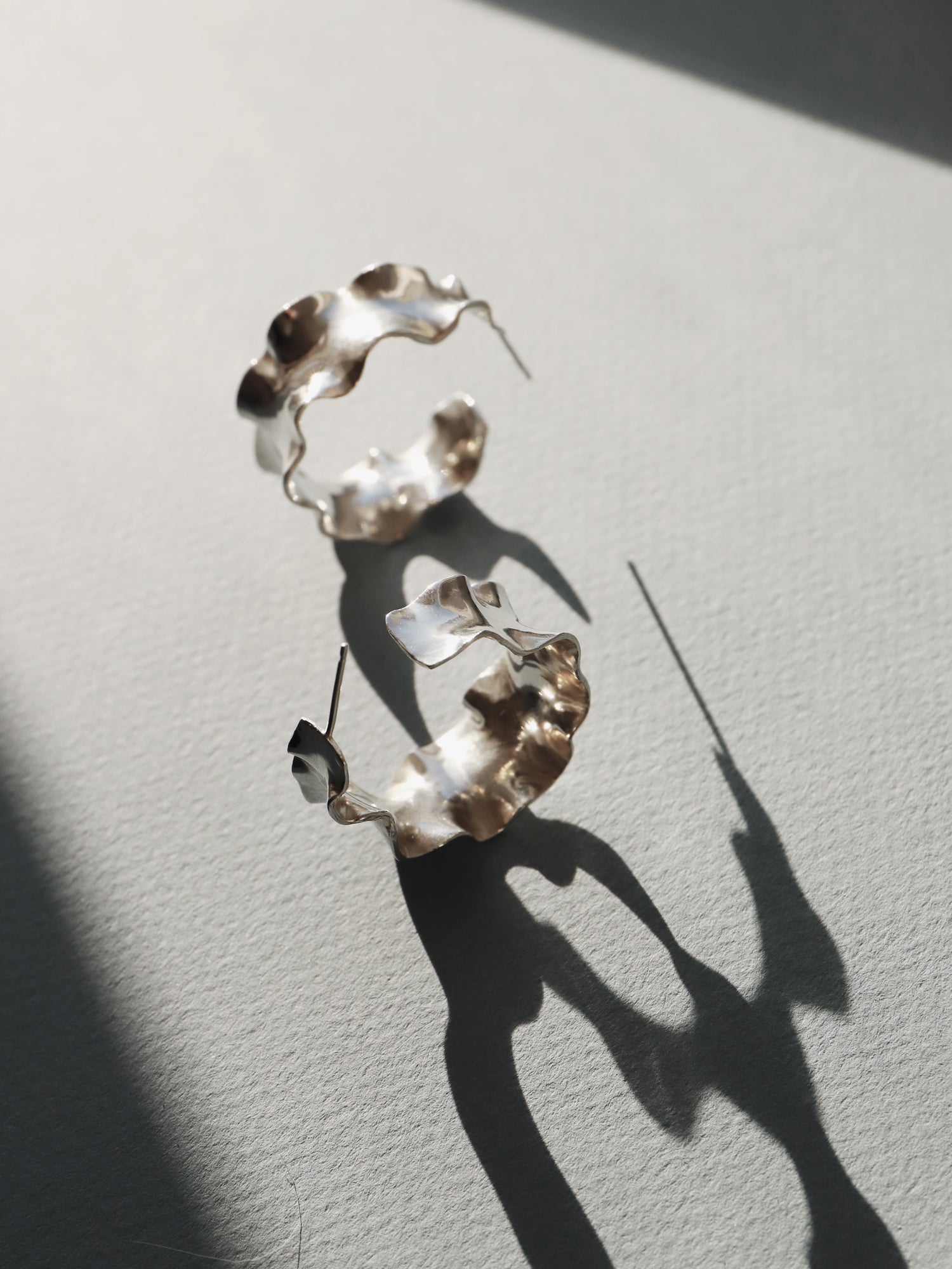 The wavy edges of these hoops were inspired by irises, Hannah's grandma's favourite flower.
