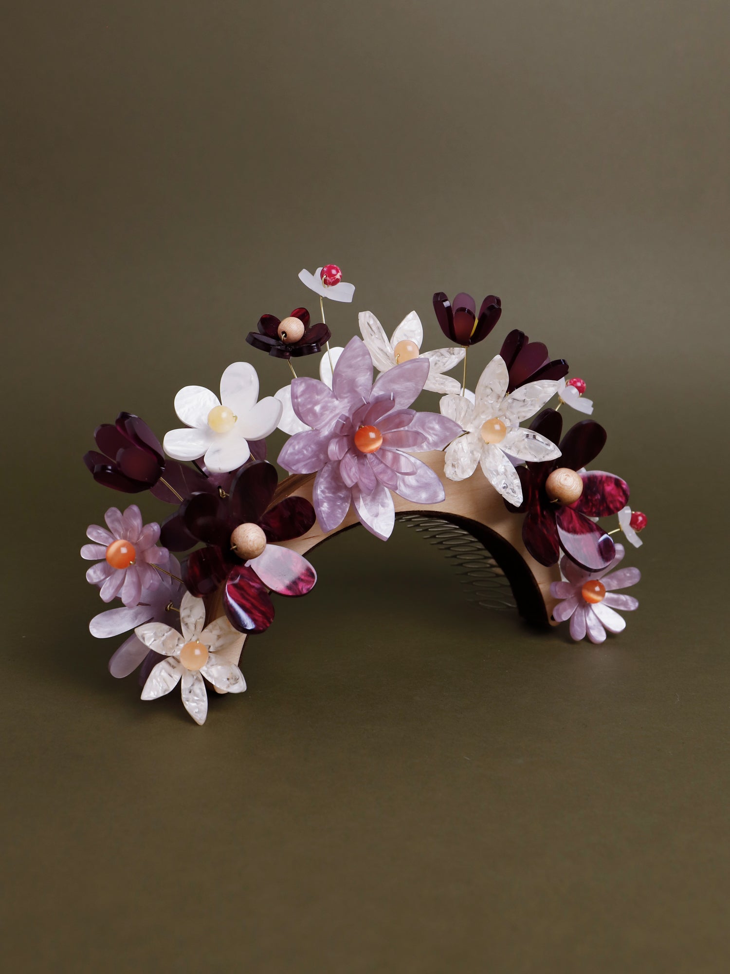 A meadow scene abundant with individually hand-formed acrylic flowers in varying colours and textures. And not only is the front beautiful, the back is too - the flowers cover the whole surface of the band.