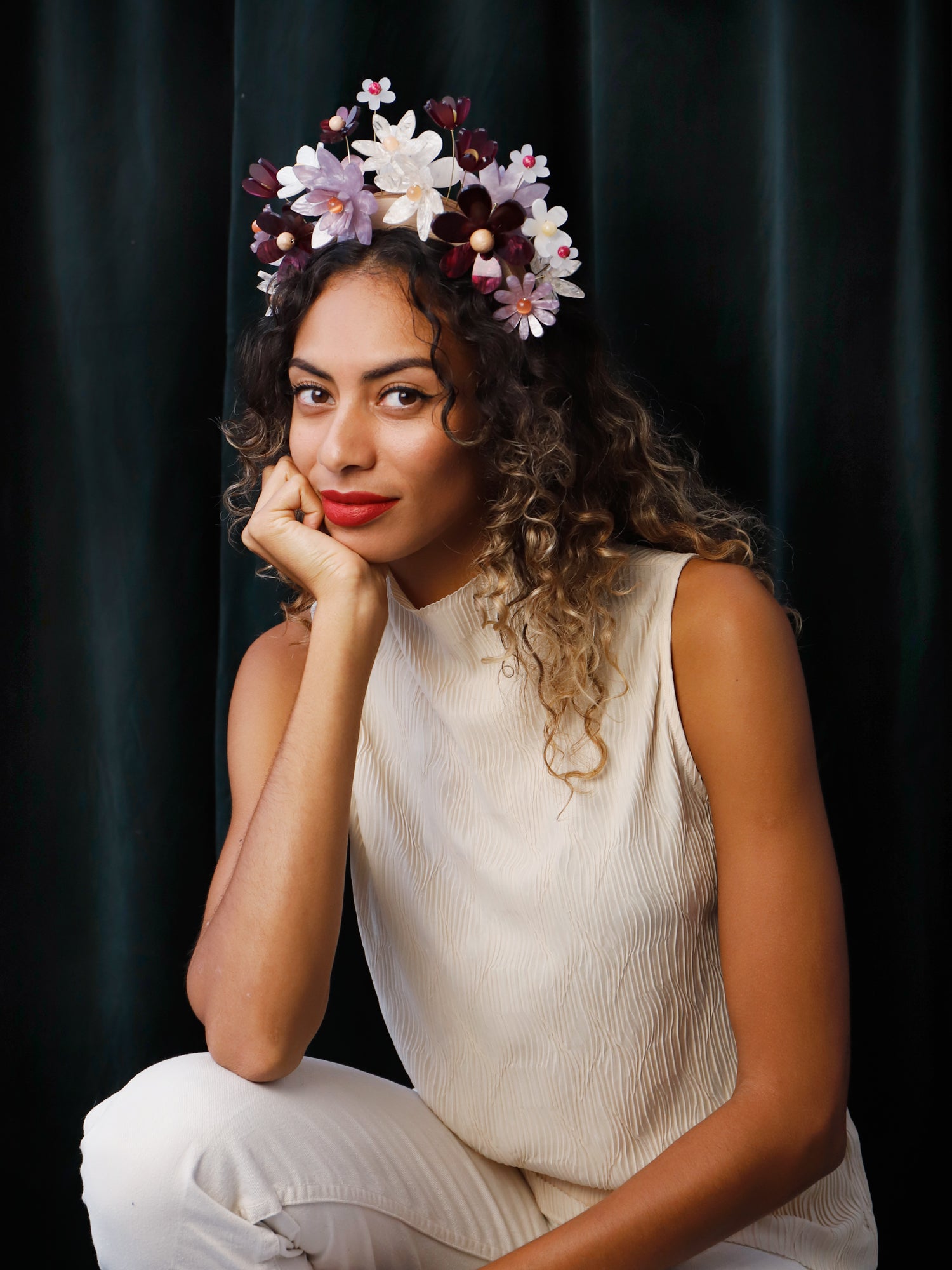 We also offer a headpiece try-on service at our London studio! Please email hello@wolfandmoon and we can organise the time & date.