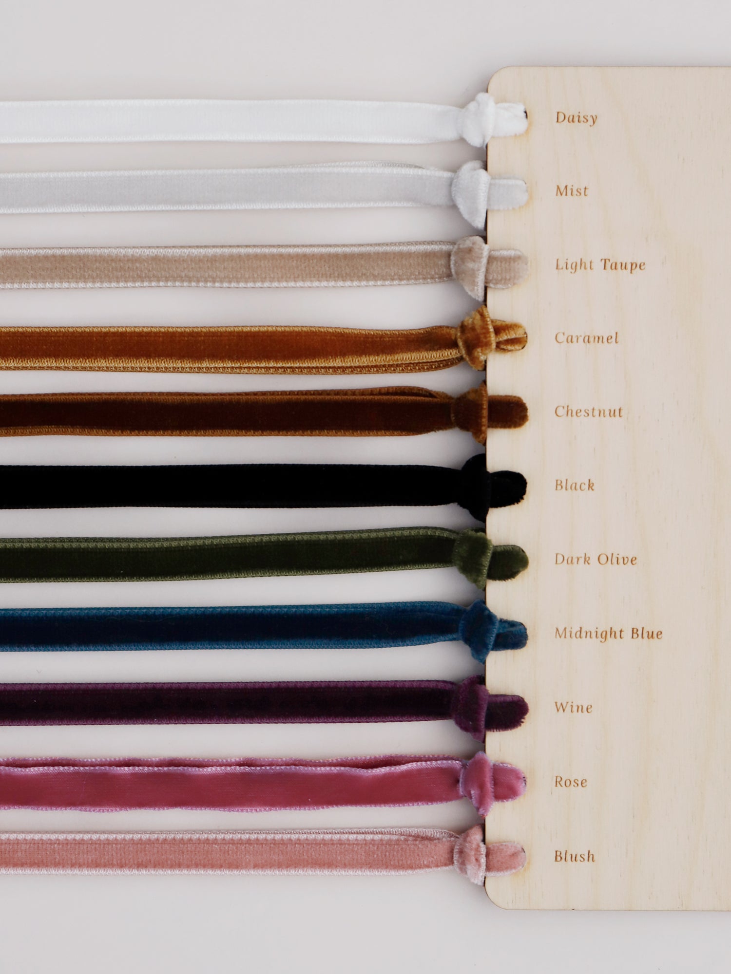 We advise choosing a ribbon colour that matches the headpiece or blends well with your hair colour.