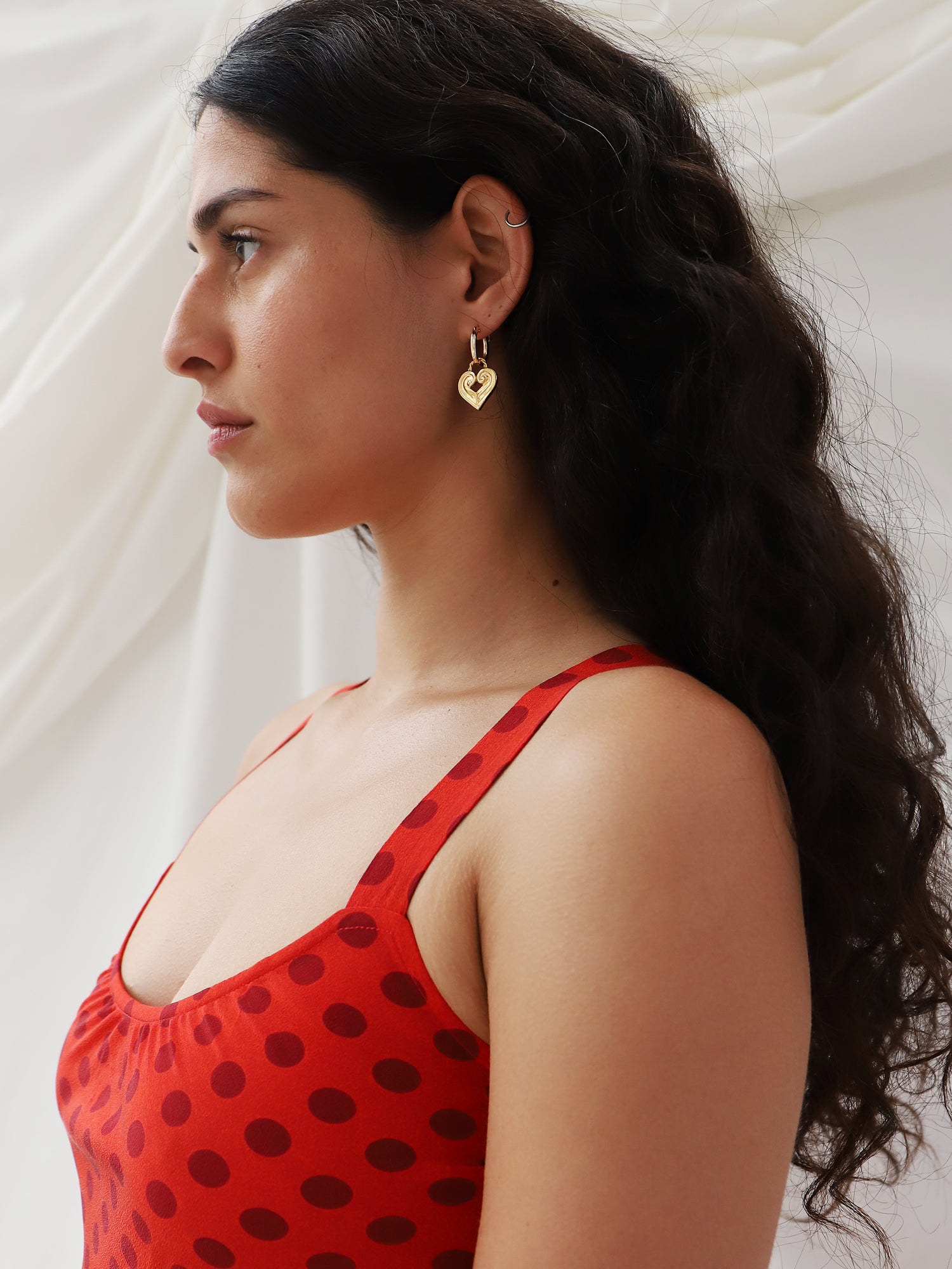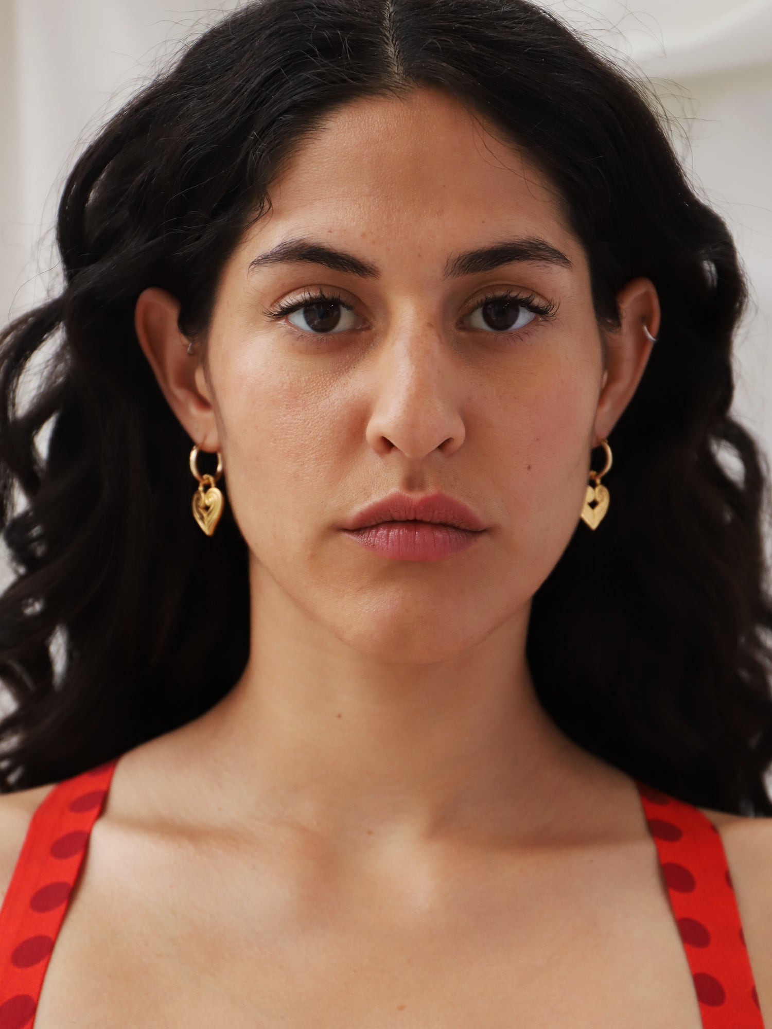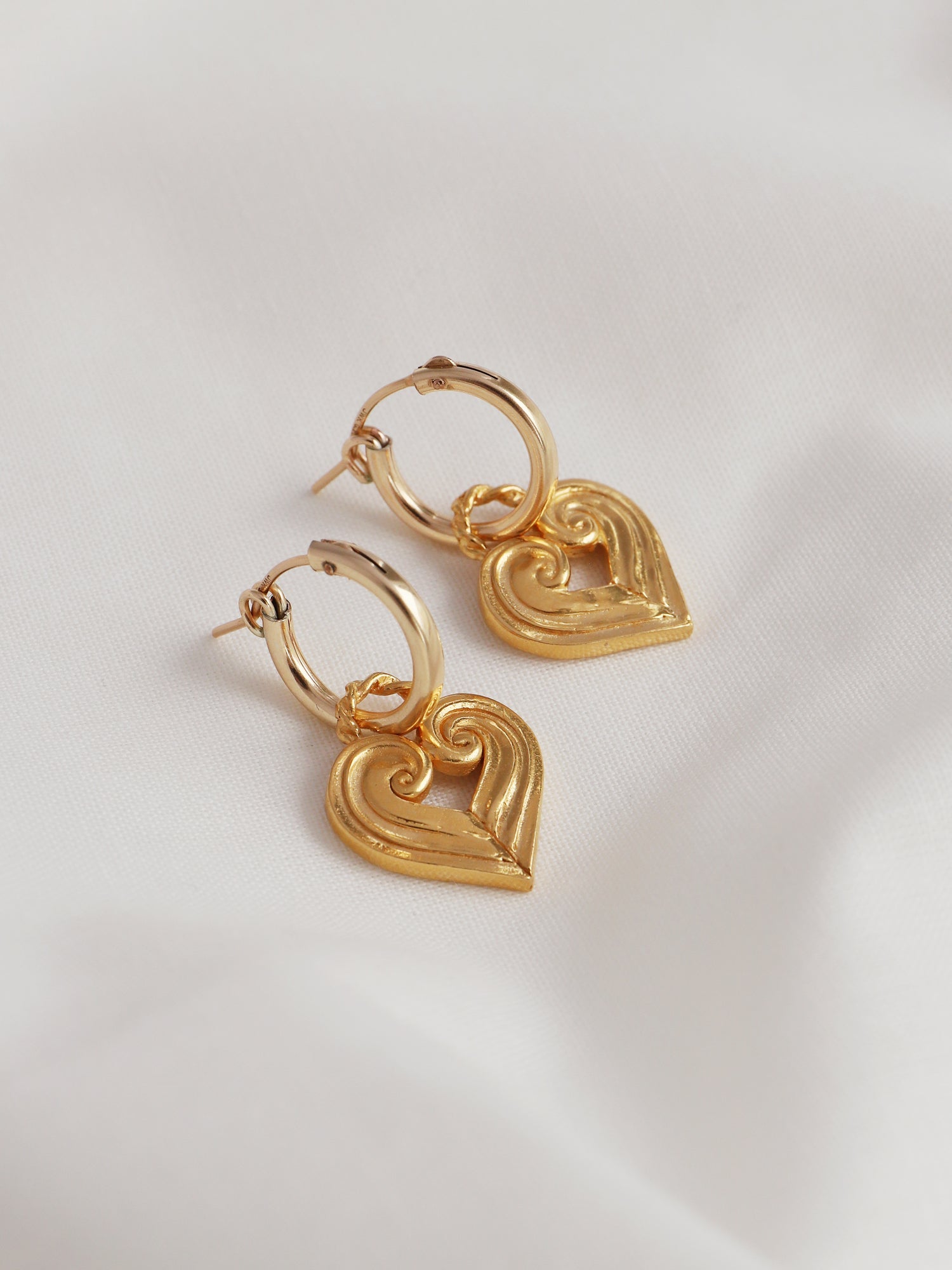 The textured heart charms hang from comfortable gold-filled hoops that are perfect for everyday wear. Charms are removable and can be purchased without hoops to add to a pair you already own. Hoops can also be worn separately.