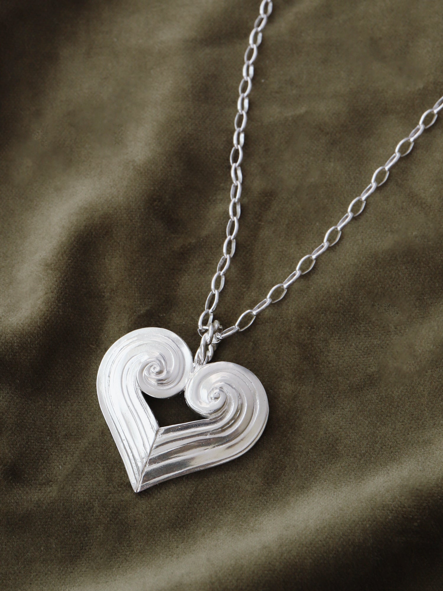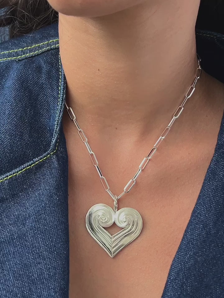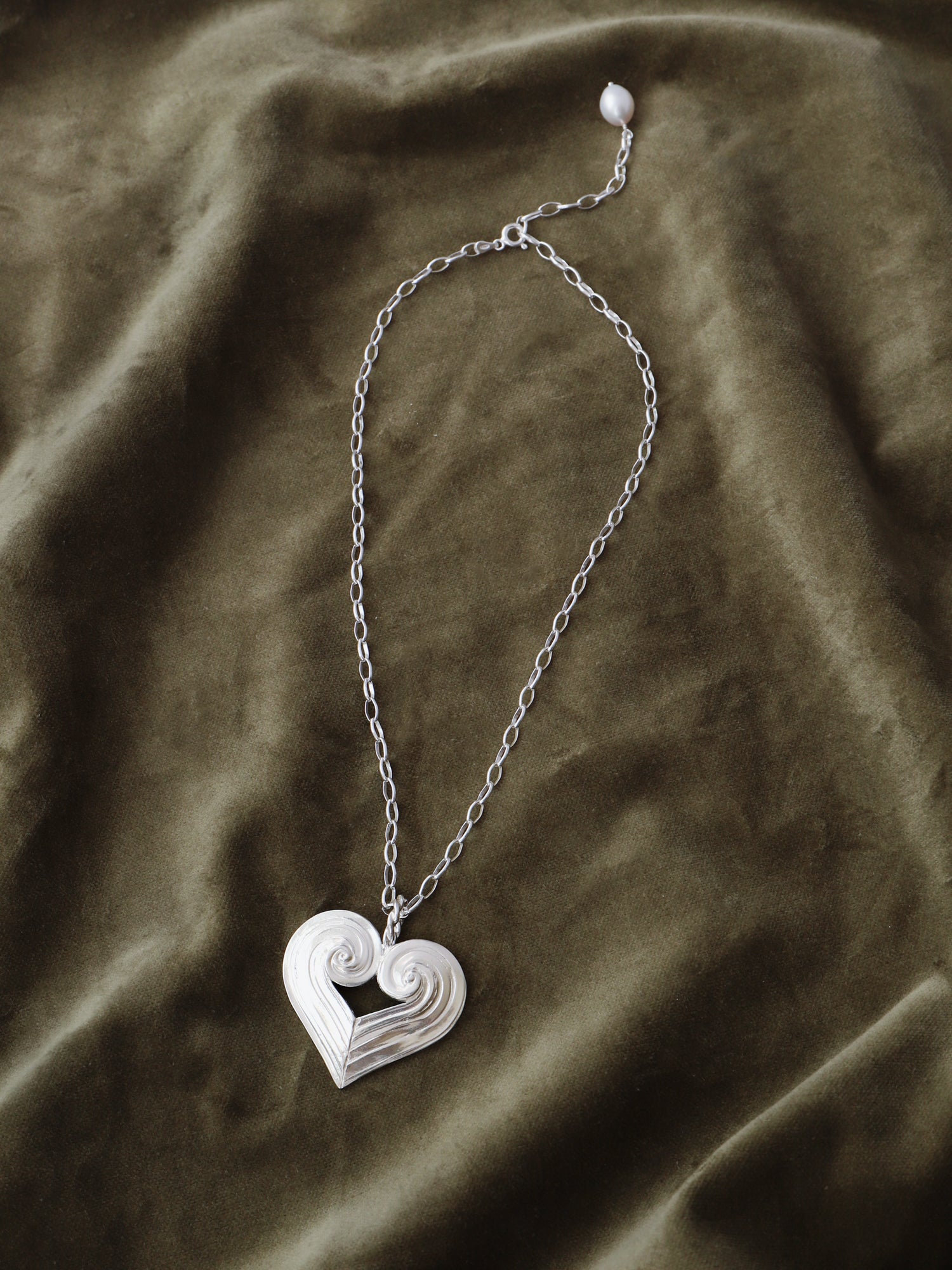This textured statement heart pendant is available with a choice of two different necklace chains - each decorated with a freshwater pearl that hangs delicately at the back. Both types of chains are fully adjustable up to 45cm and look great worn as a choker as well as longer around the neck. The chain can also be worn on its own or layered with other necklaces.