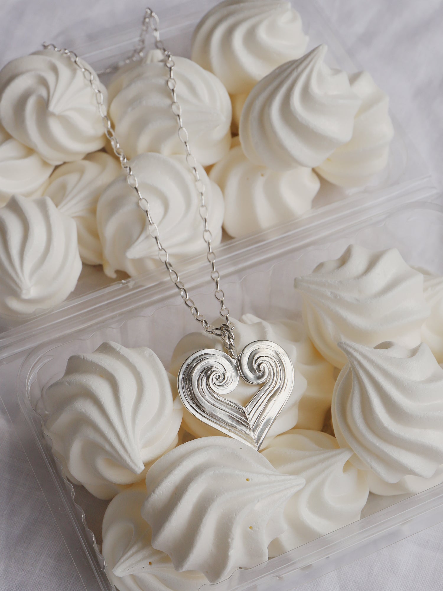 Sculptural, romantic jewellery made from recycled silver.