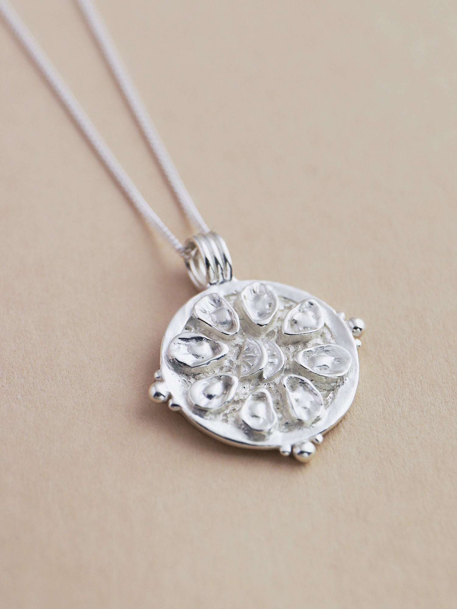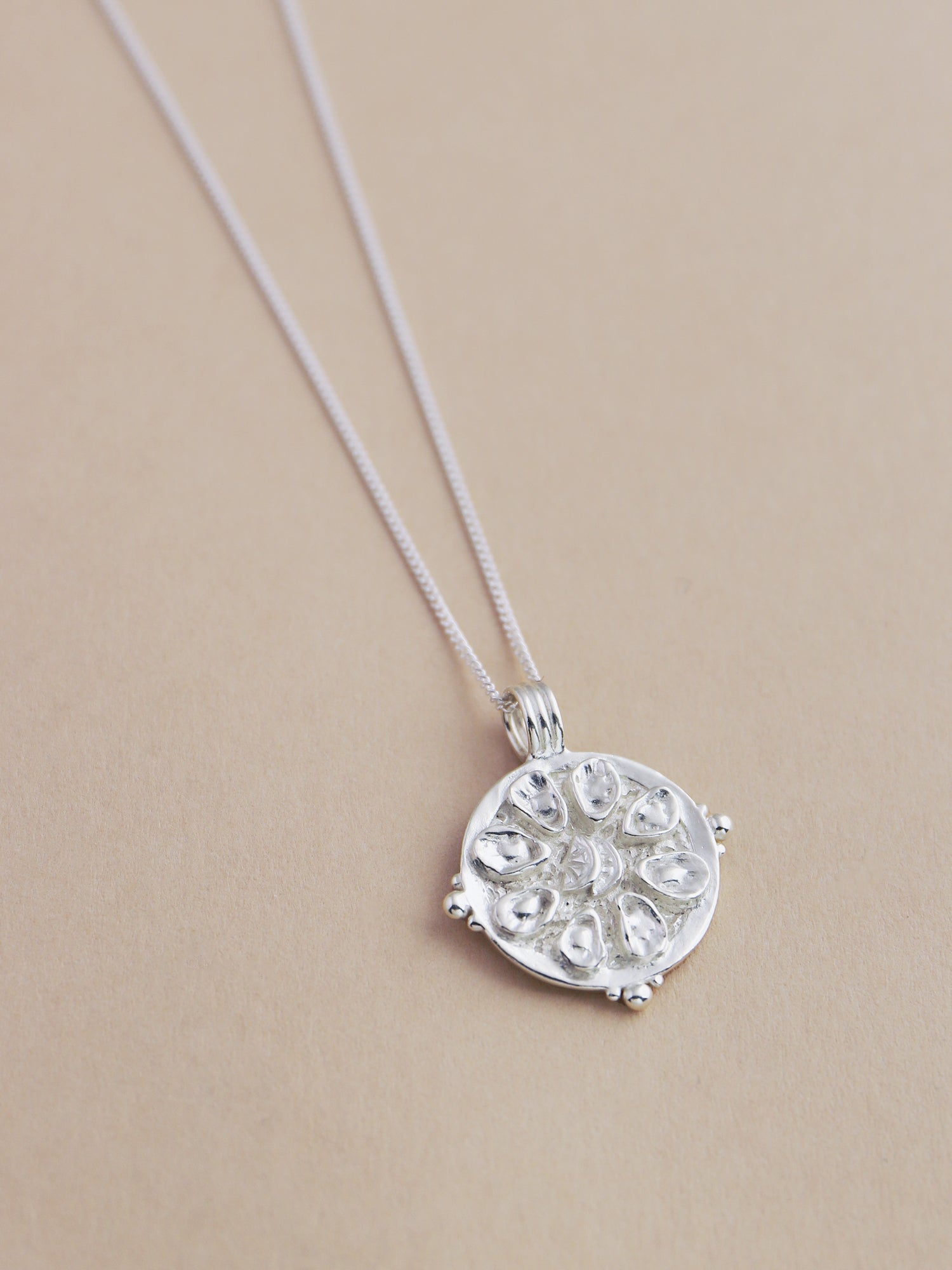 Feeling dinner party ready? Hannah designed and hand-carved our oyster platter pendant initially in wax. Each piece is then cast from a mould into recycled sterling silver using the the ancient technique of lost wax casting.
