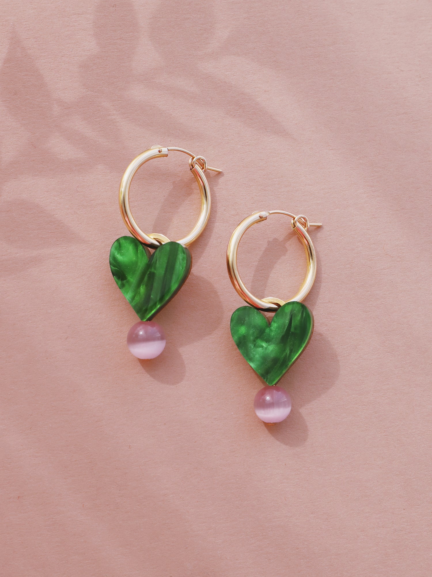 from $48.00 - Robyn Drop Hoops in Emerald Mother of Pearl