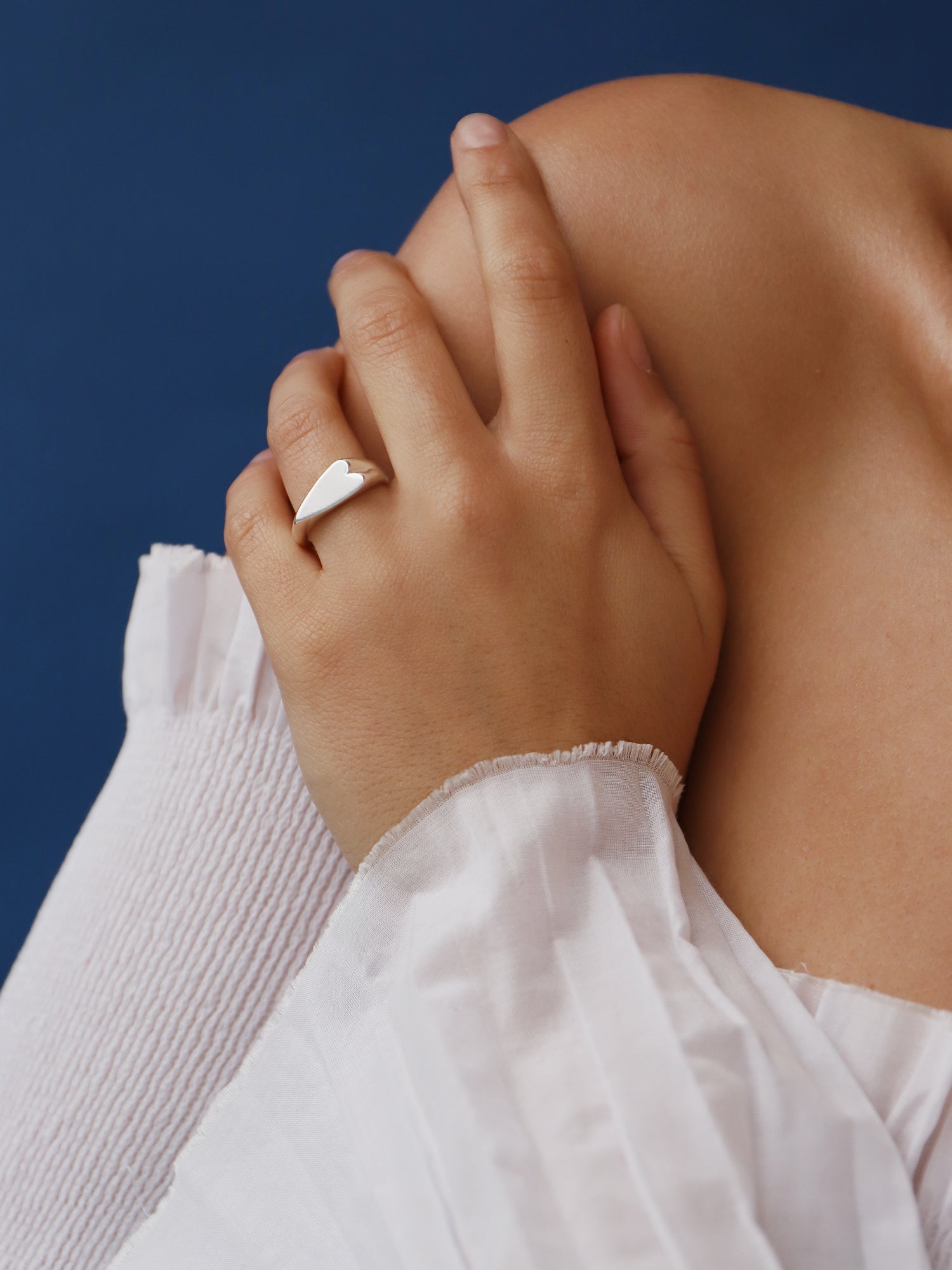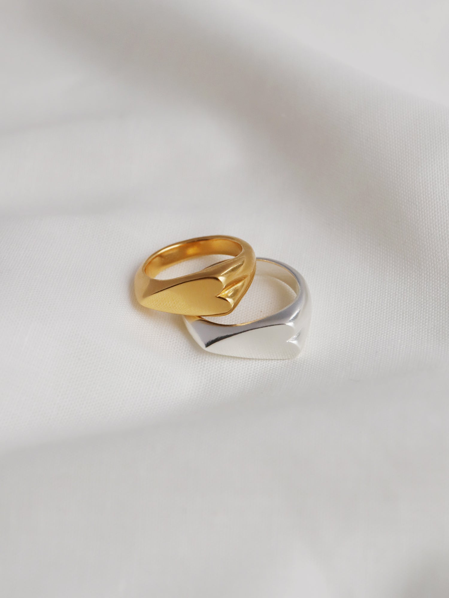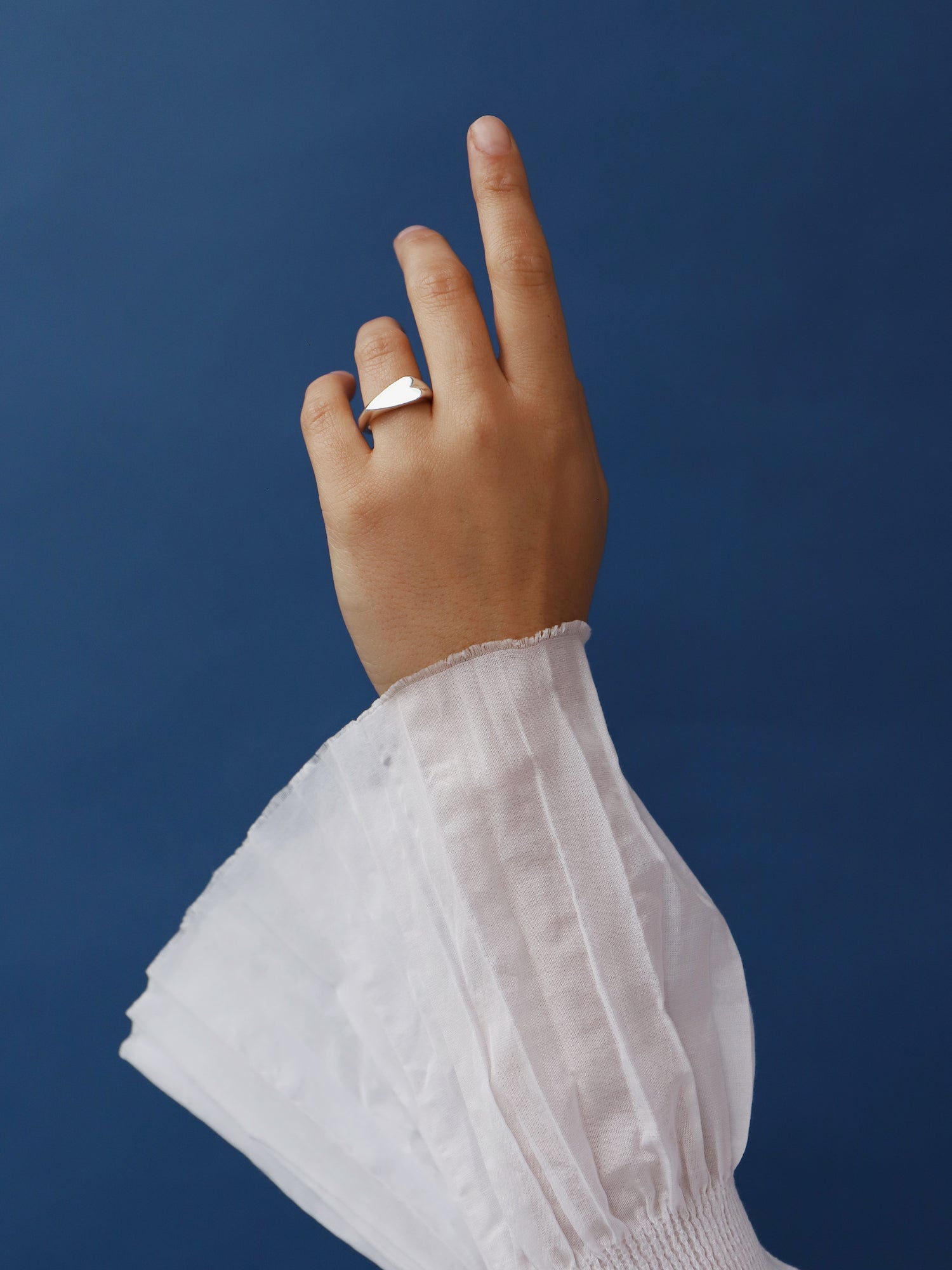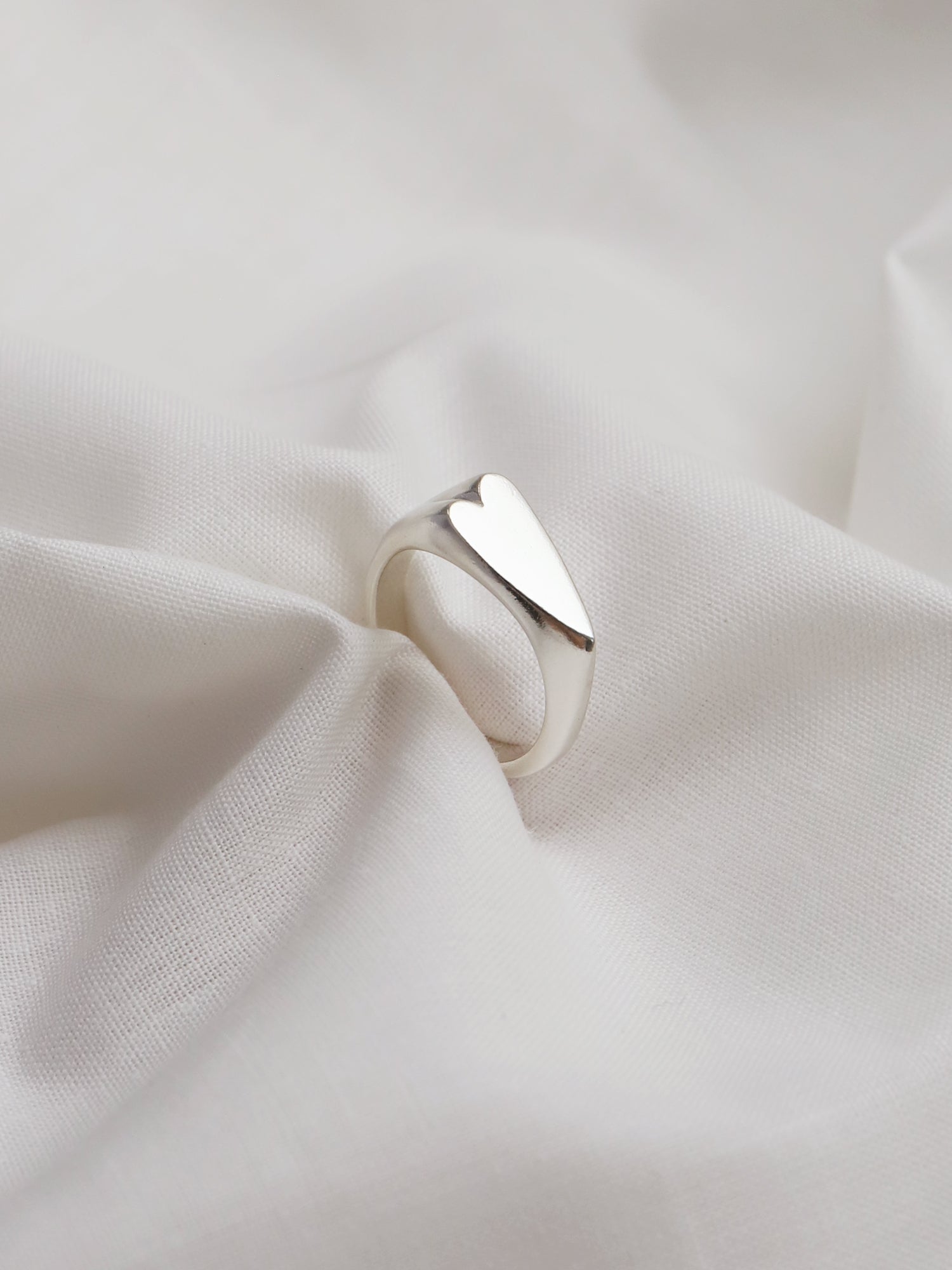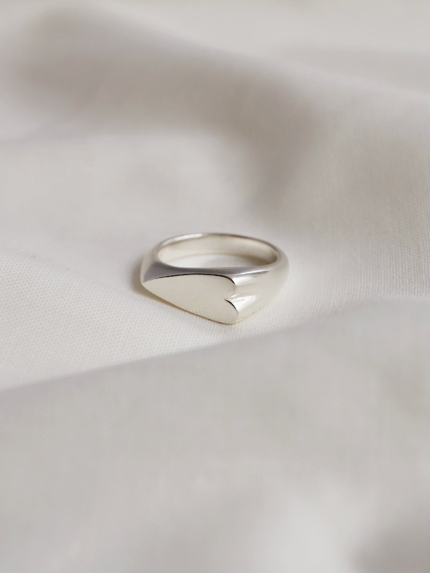 A classic heart signet but flipped on its side - we prefer it this way! Just as perfect on its own as it is stacked with other rings.