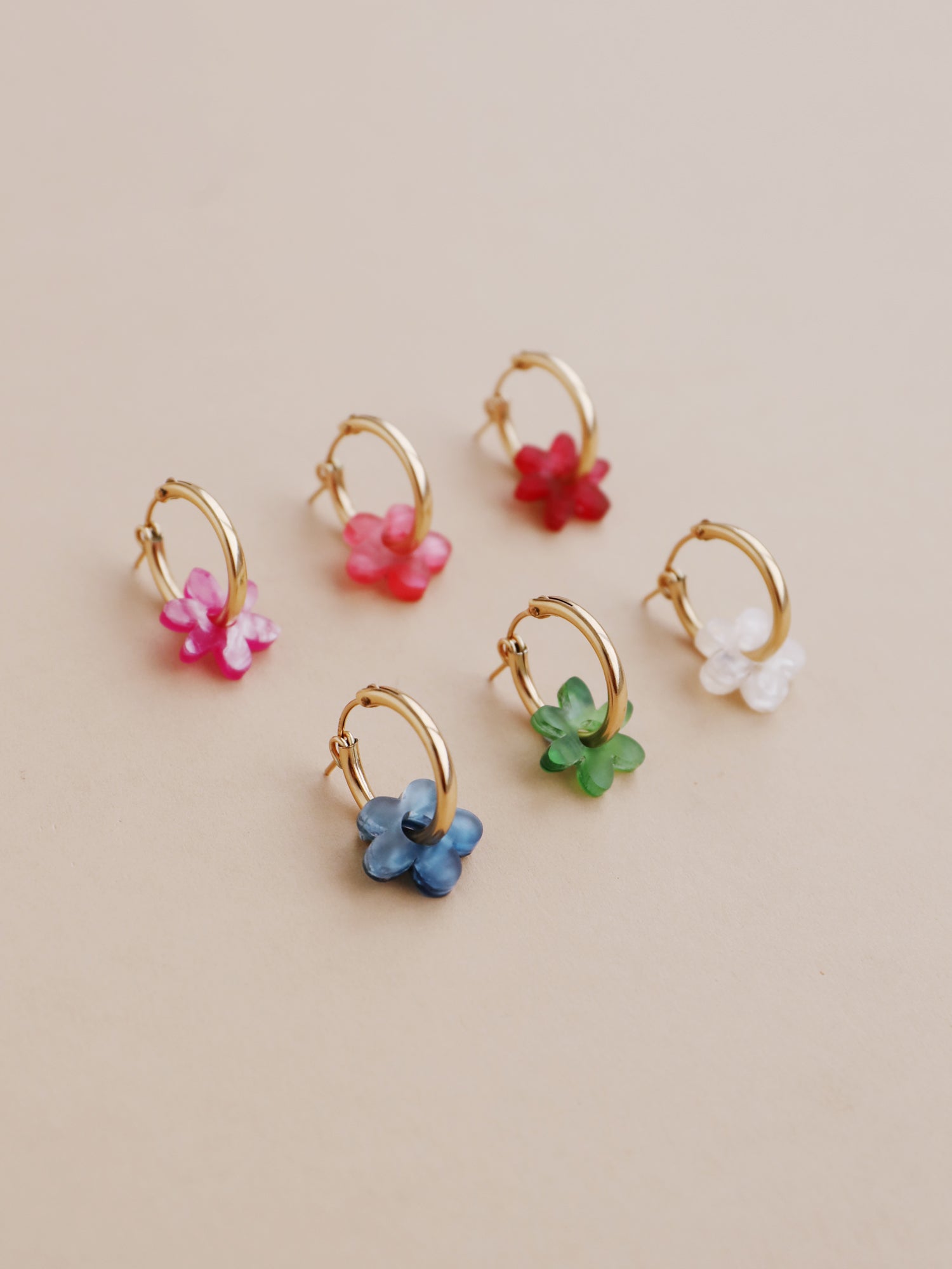 6 individual charms - 1 x Mini Nina Hoop in Ocean, 1 x Mini Caia Hoop in Forest, 1 x Mini Nina Hoop in Off White, 1 x Mini Caia Hoop in Ruby, 1 x Mini Nina Hoop in Peony & 1 x Mini Caia Hoop in Orchid.