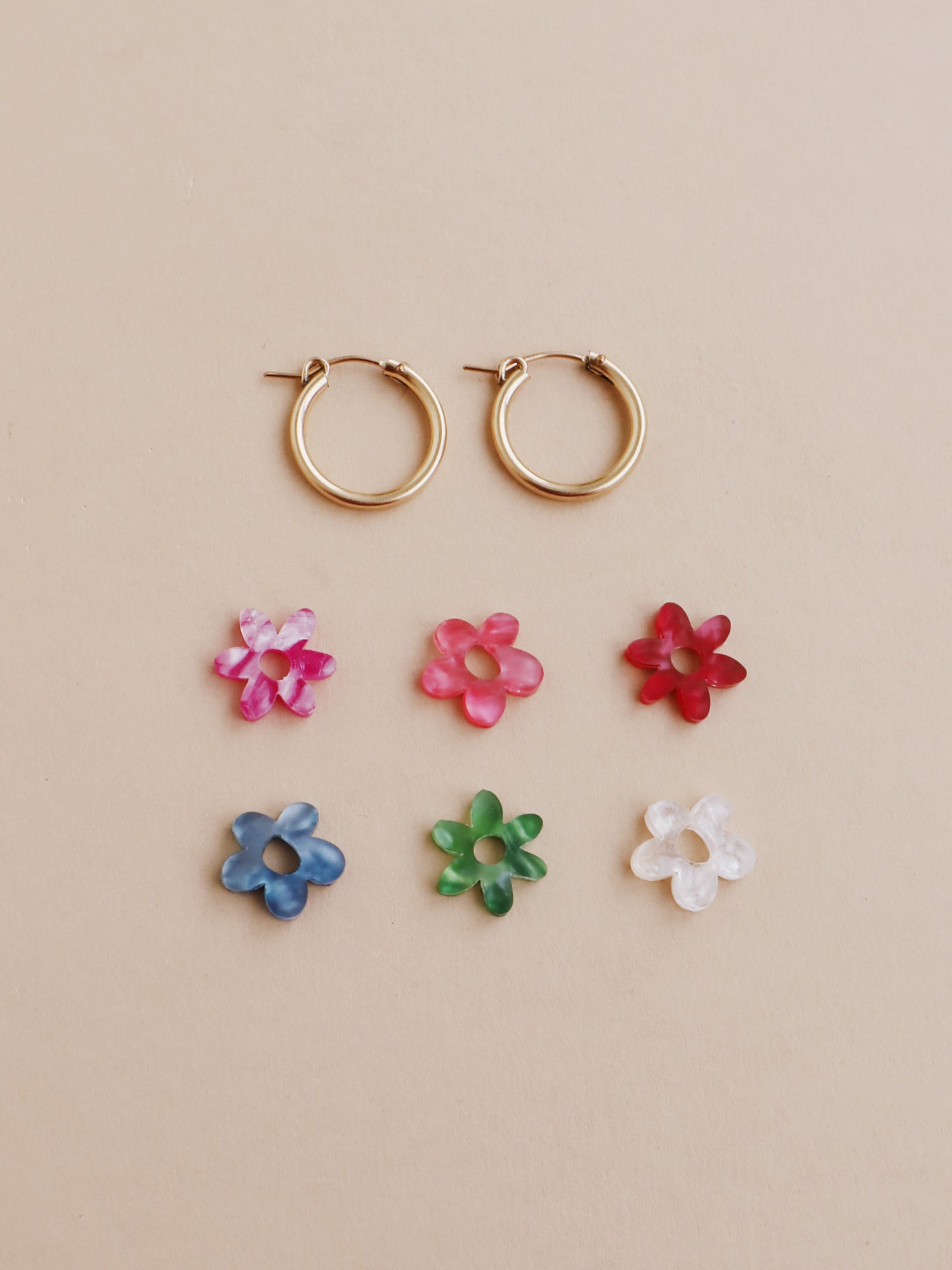 Mini versions of our abstract flower charms made from 100% recycled acrylic which is handmade in-house. This set includes: