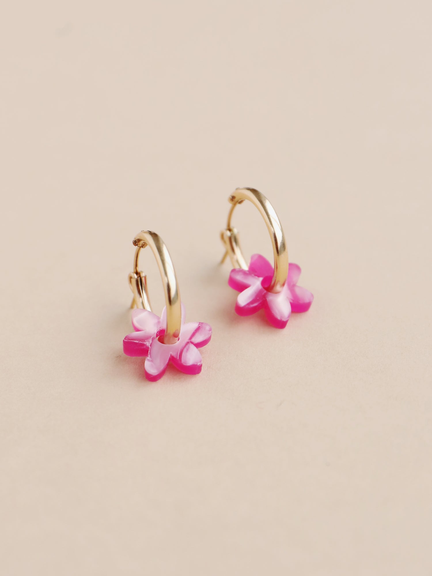 Mini versions of our abstract flower charms made from 100% recycled acrylic which is handmade in-house. This colour is double-sided with a white & pink texture on one side and plain pink on the reverse.