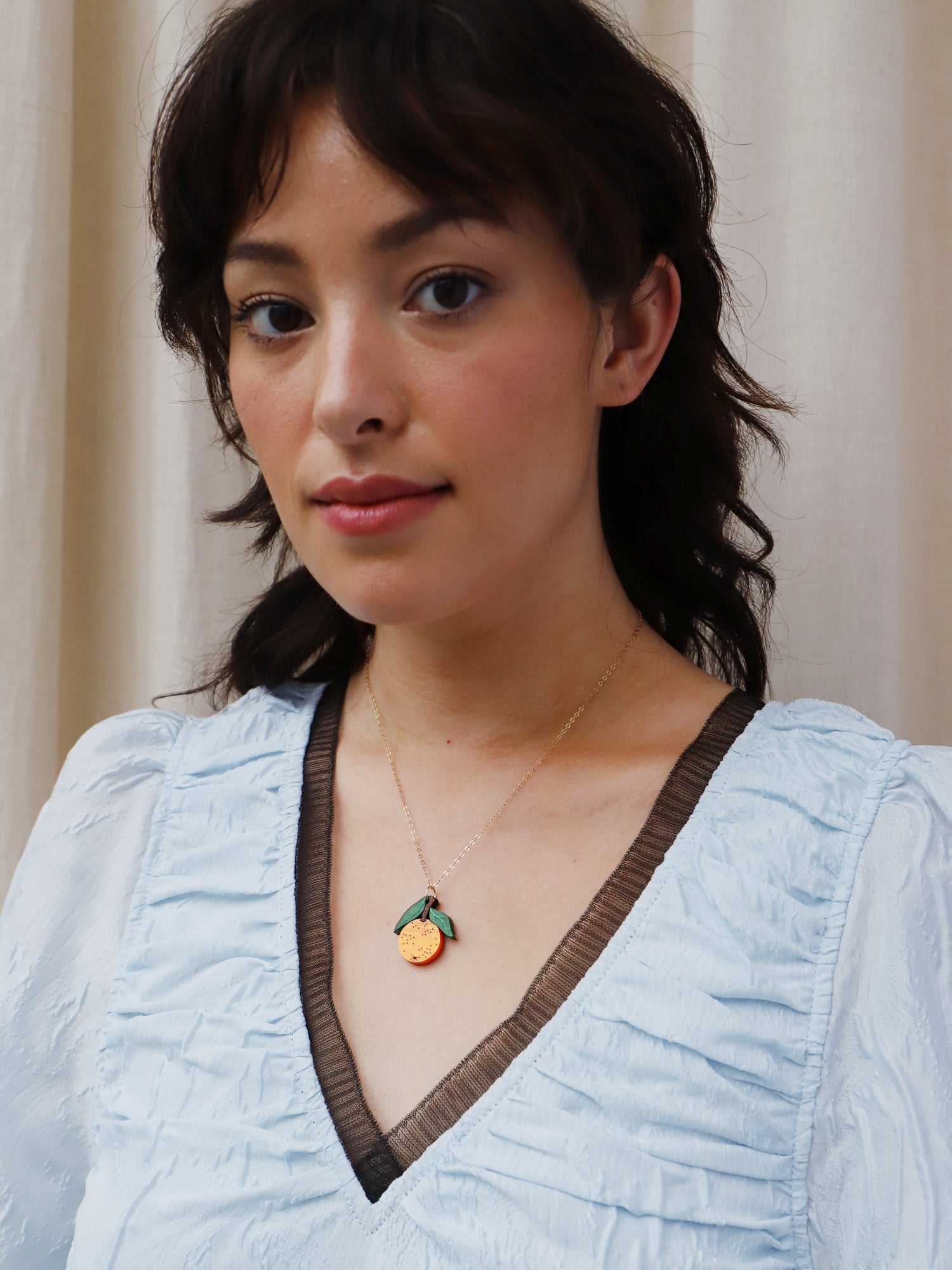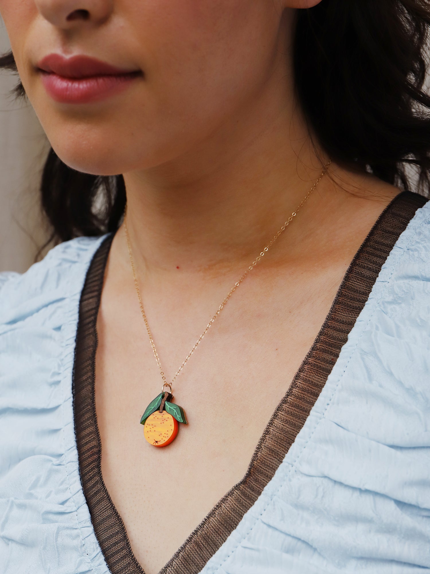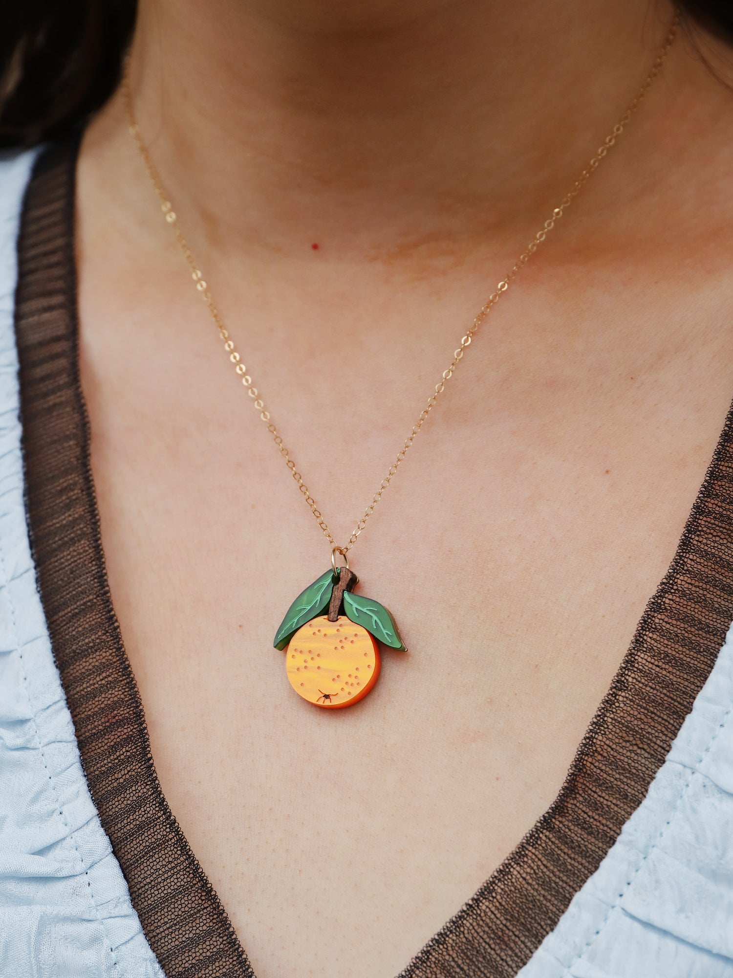 Add a splash of sunshine to your style with our zesty, hand-crafted, and lightweight orange necklace.