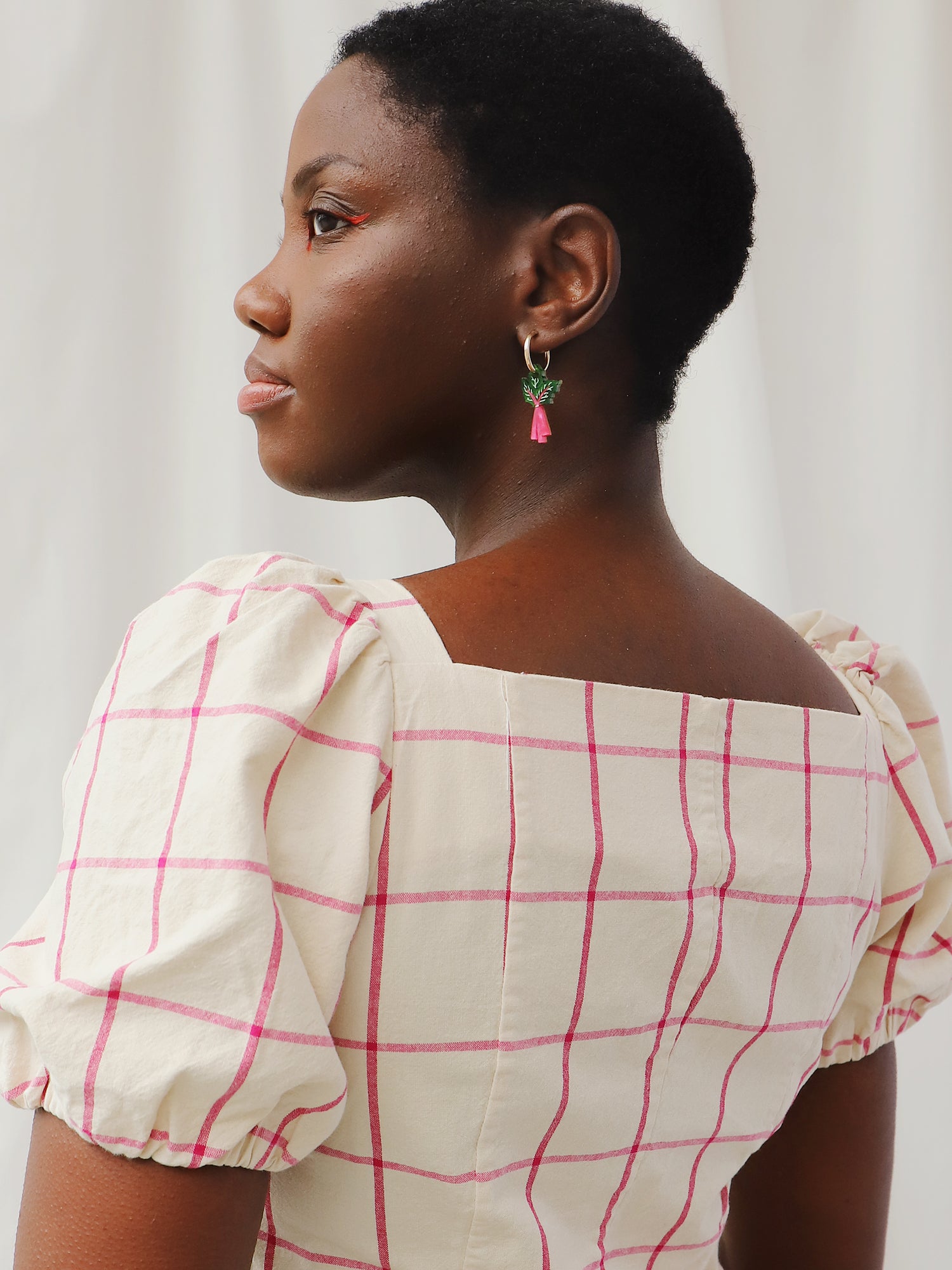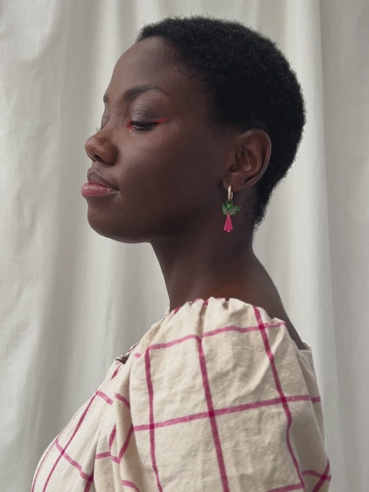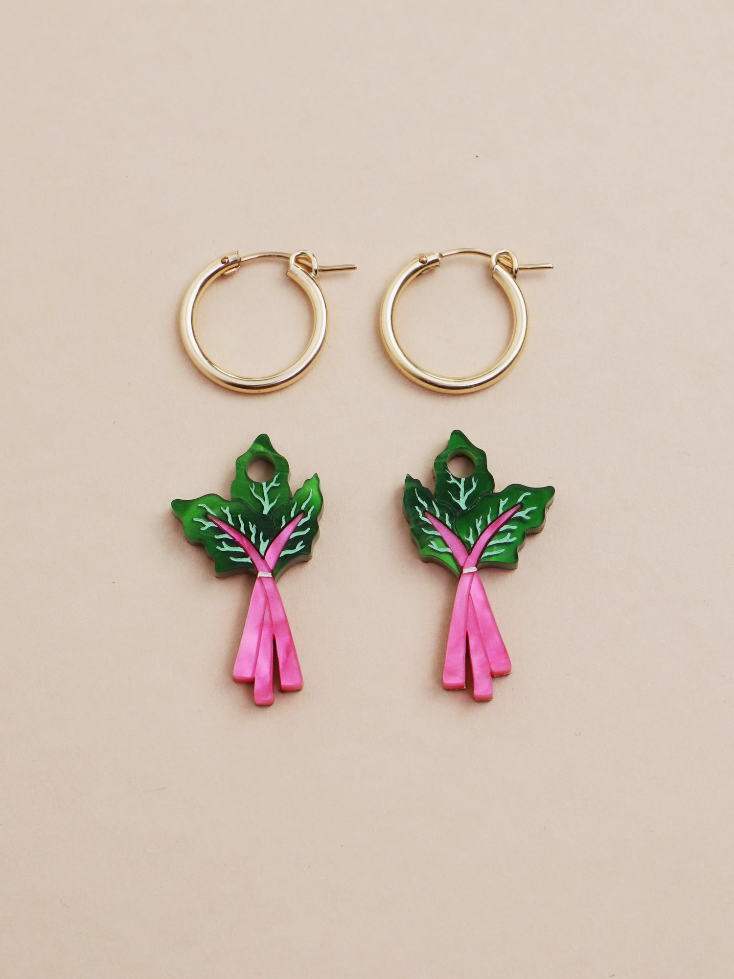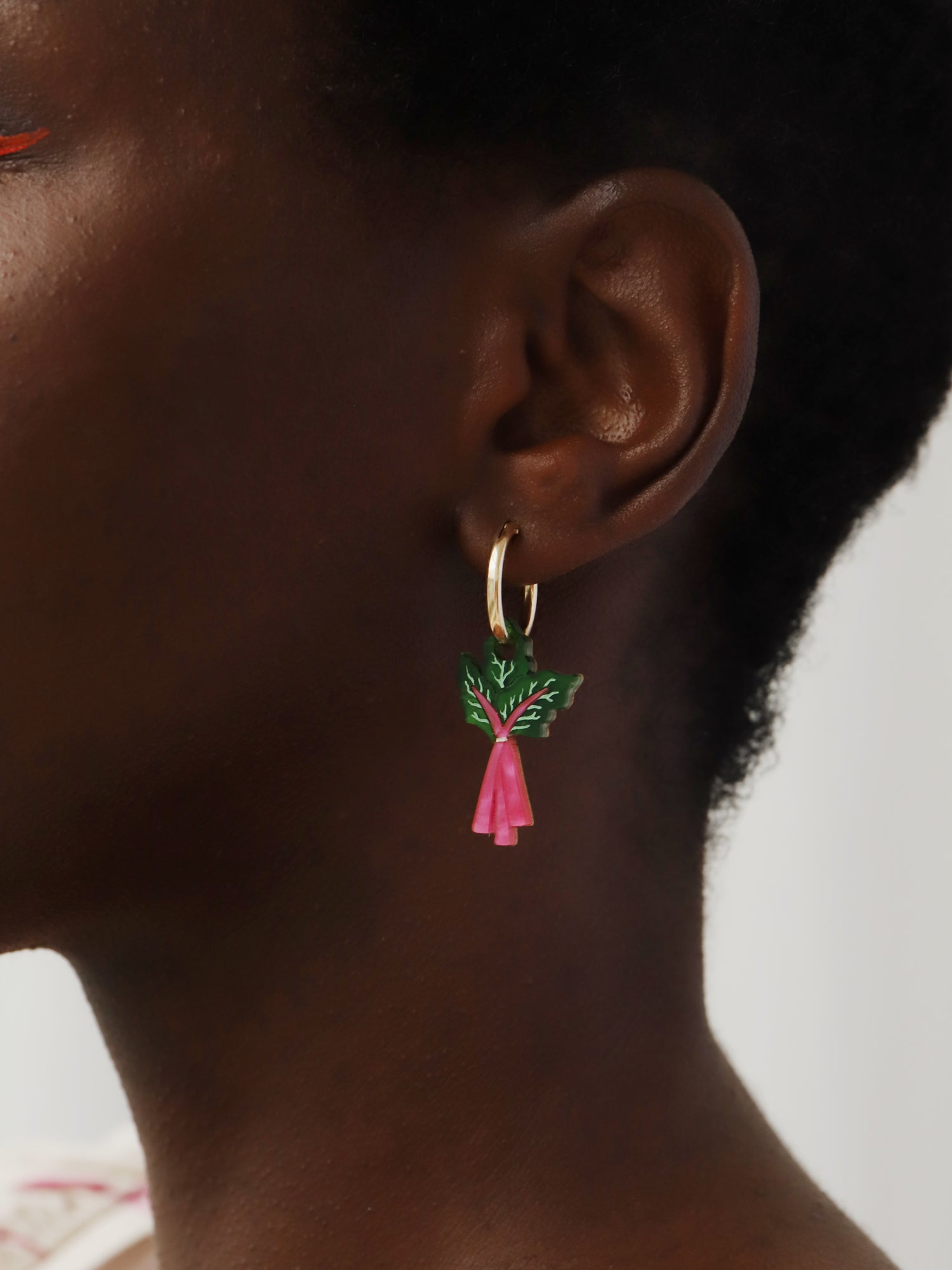 Our lightweight rhubarb hoop earrings, made with acrylic and hand-inked details, are perfect for layering or to mix 'n' match with other styles.