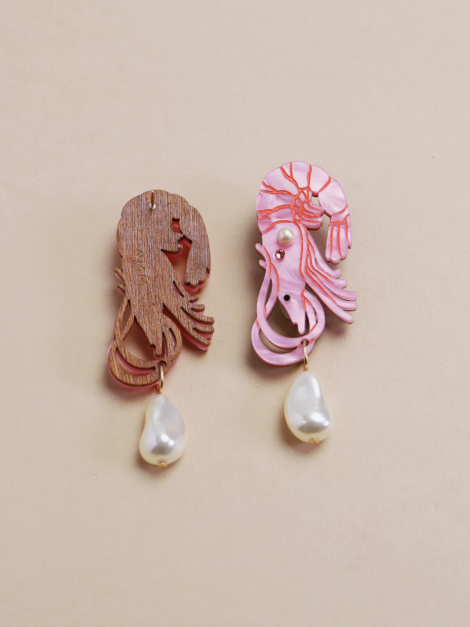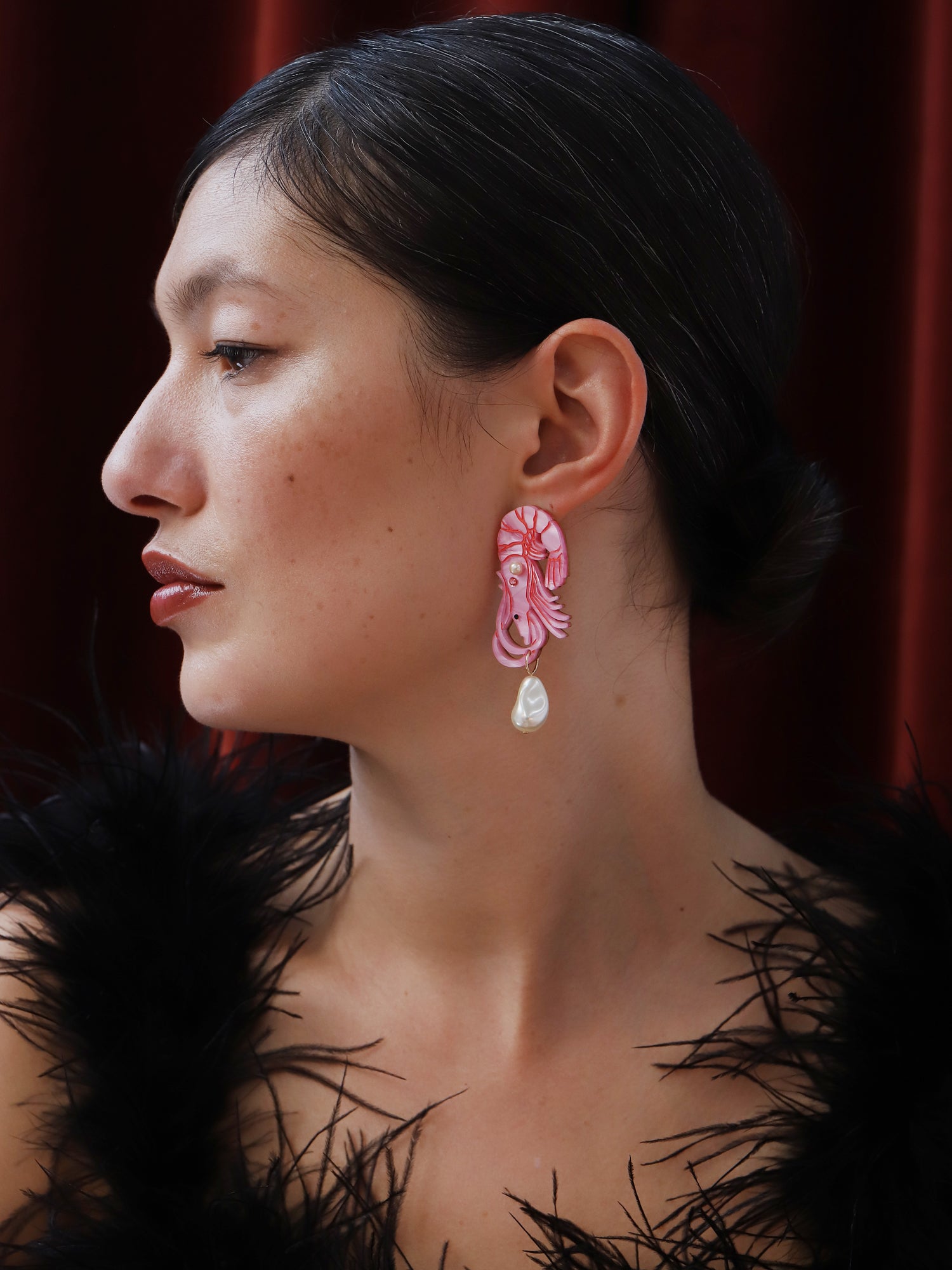 Feel dinner party ready with our lightweight shrimp statement earrings, made from acrylic with hand-inked details.